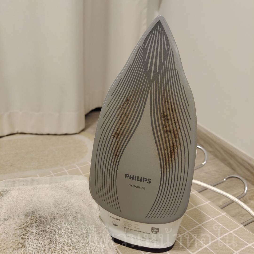 เลยต้องมารีดผ้าเองครับ แต่ก็รีดใส่ไม่กี่ตัว ใช้เตารีดนานไปๆ มันก็เป็นคราบแบบนี้ครับ