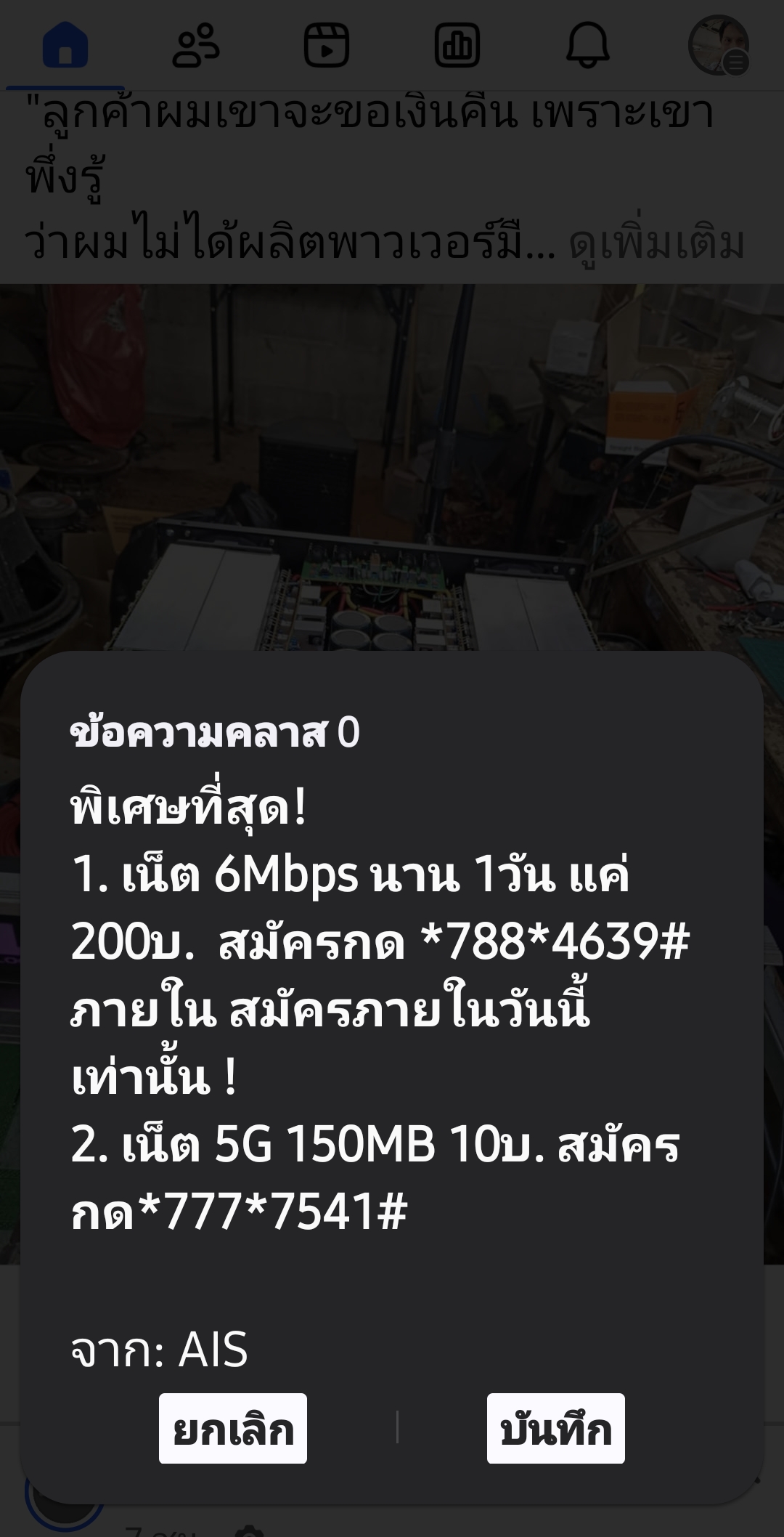 เห็น เน็ต Ais แบบเติมเงิน ทางSMSมา