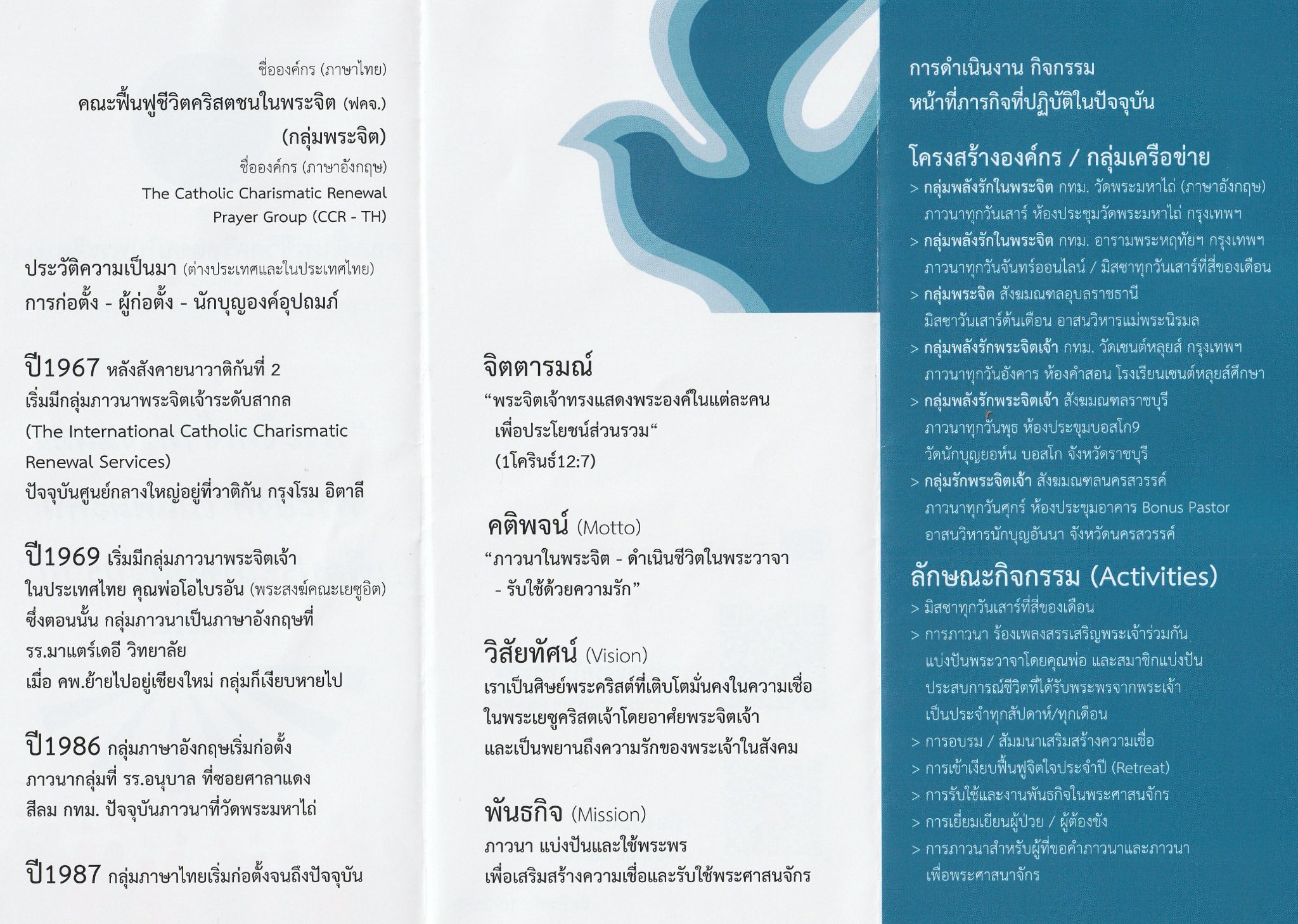 ประวัติ & ข้อมูล คณะฟื้นฟูชีวิตคริสตชนในพระจิต (ฟคจ.) (กลุ่มพระจิต) The Catholic Charismatic Renewal Prayer Group
