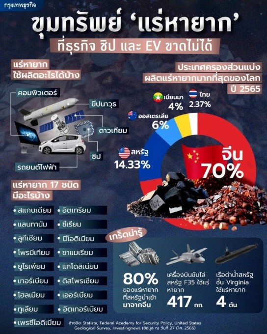 2.ไทยเป็นผู้ผลิตแร่หายากอันดับที่เท่าไร ของโลก