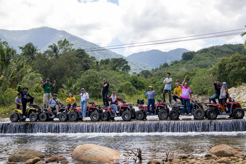 จากท่าอากาศยานนานาชาติหาดใหญ่ใช้เวลาเกือบ 2 ชั่วโมงก็มาถึงที่ภูดินสอรีสอร์ท เมื่อมาถึง เพื่อนร่วมทริปคนอื่น ๆ ก็รออยู่ก่อนแล้ว ลงจากรถปุ๊บก็เดินทางกันต่อเลย คุณสุวิทย์ได้เตรียมรถสองแถวไม้โบราณ เป็นยานพาหนะพาลูกทริปไปเที่ยวยังสถานที่ท่องเที่ยวต่าง ๆ จุดหมายแรกอยู่ที่ ‘ATV เขาครามแอดเวนเจอร์’ โดยเราจะได้ขับ ATV ไปลุยผืนป่าเขียวกันครับ