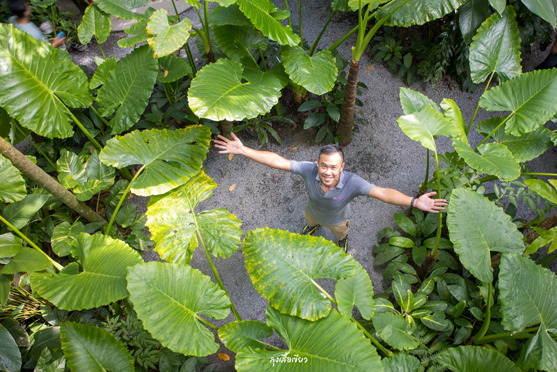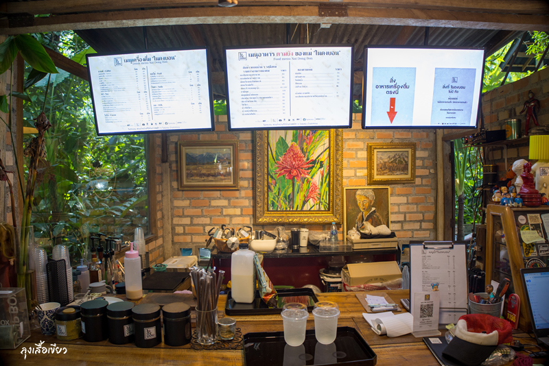 บรรยากาศในร้านร่มรื่นท่ามกลางป่าบอนอันเขียวขจี มีมุมถ่ายรูปสวย ๆ เยอะมาก ที่นี่เปิดเฉพาะวันเสาร์ อาทิตย์ และ วันหยุดนักขัตฤกษ์ ตั้งแต่เวลา 09.00 -18.00 น. ครับ