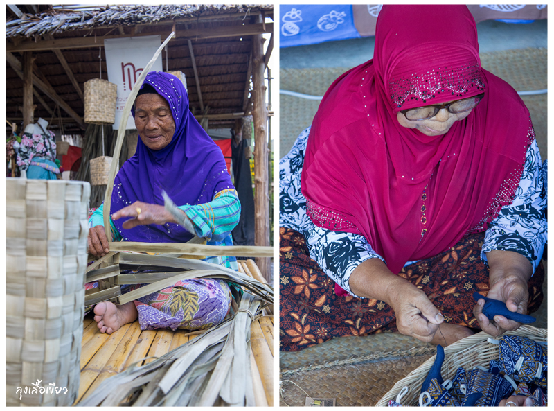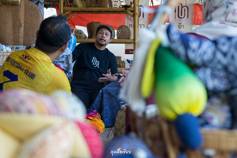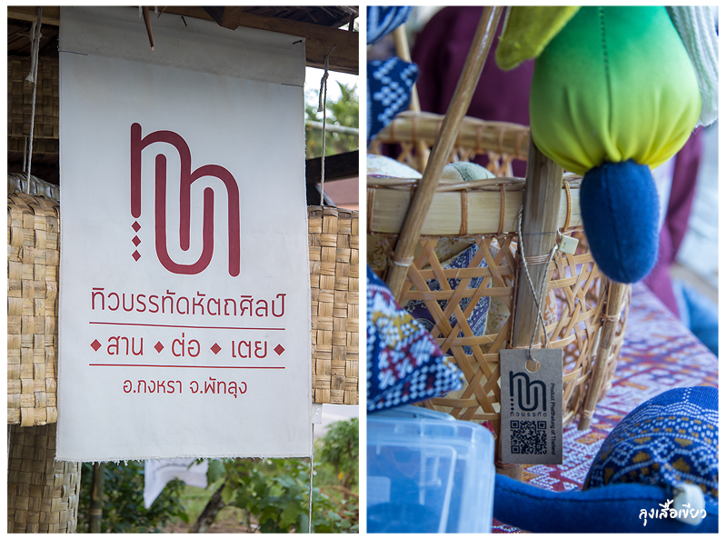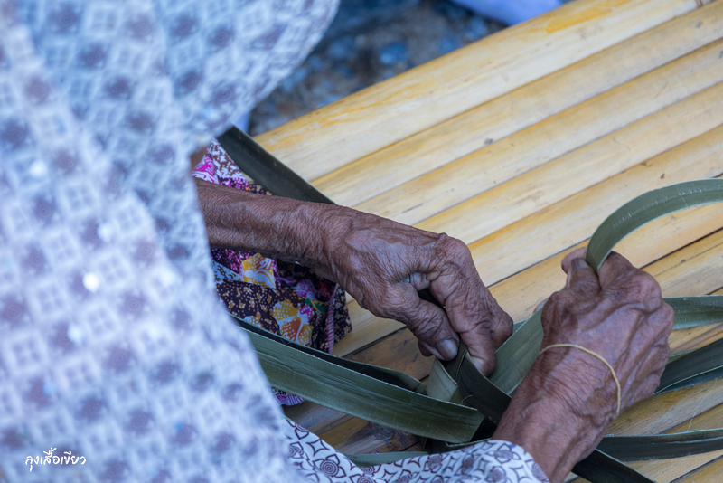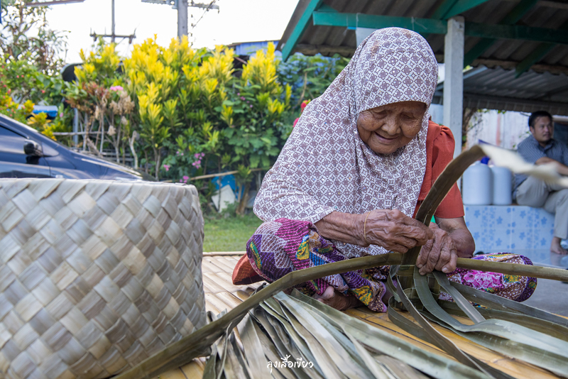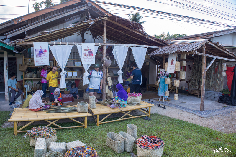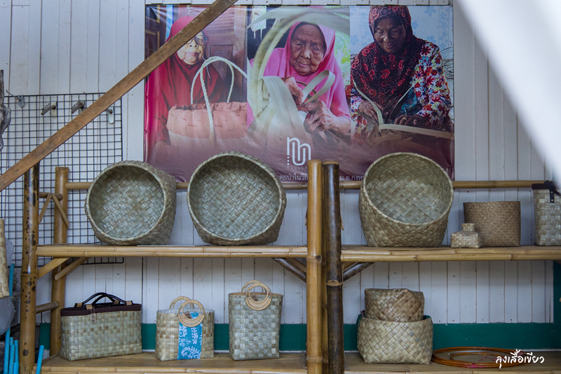 หลังจากเสพบรรยากาศสีเขียวในดงบอนกันจนอิ่มเอมใจแล้ว คุณสุวิทย์พาผมไปเรียนรู้การจักสานเตยป่าที่ ‘ทิวบรรทัดหัตถศิลป์ สาน-ต่อ- เตย’ ศูนย์เรียนรู้การจักสานเตยป่าบนเทือกเขาบรรทัดที่ใช้ภูมิปัญญาชาวอำเภอกงหรา ภายใต้ชื่อแบรนด์คราฟต์ “ทิวบรรทัด” ครับ โดยการเรียนรู้ครั้งได้มีบังบี เสกศิลป์ ชูศรีอ่อน เจ้าของตราสินค้าทิวบรรทัด มาเล่าความเป็นมาให้ฟังว่า “เตยป่าจะขึ้นอยู่บริเวณริมน้ำชื้นแฉะ ใบเตยป่ามีลักษณะเรียวยาว และมีความเหนียว กลางใบเป็นร่องรางลึกและมีเส้นใยที่แข็งแรง จึงเหมาะกับการนำมาจักสานเป็นผลิตภัณฑ์ ใบเตยป่าเมื่อตัดใบไปแล้วใช้เวลาไม่นานนักก็จะแตกใบใหม่ จึงสามารถตัดเป็นรอบได้ทุก ๆ สามเดือน ปัจจุบันชาวบ้านในพื้นที่มักนำเตยป่ามาขยายพันธุ์ไว้ในบริเวณบ้านเพื่อทำเป็นไม้ประดับ รวมถึงนำไปใช้ประโยชน์ในการจักสานเสื่อและกระเป๋า”