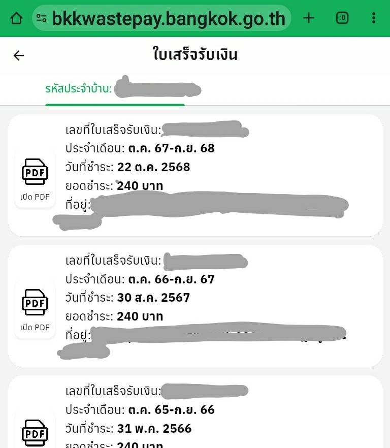 รีวิว หลังลงทะเบียนแยกขยะที่เว็บ BKK WASTE PAY และใบเสร็จล่าสุด ปี 68