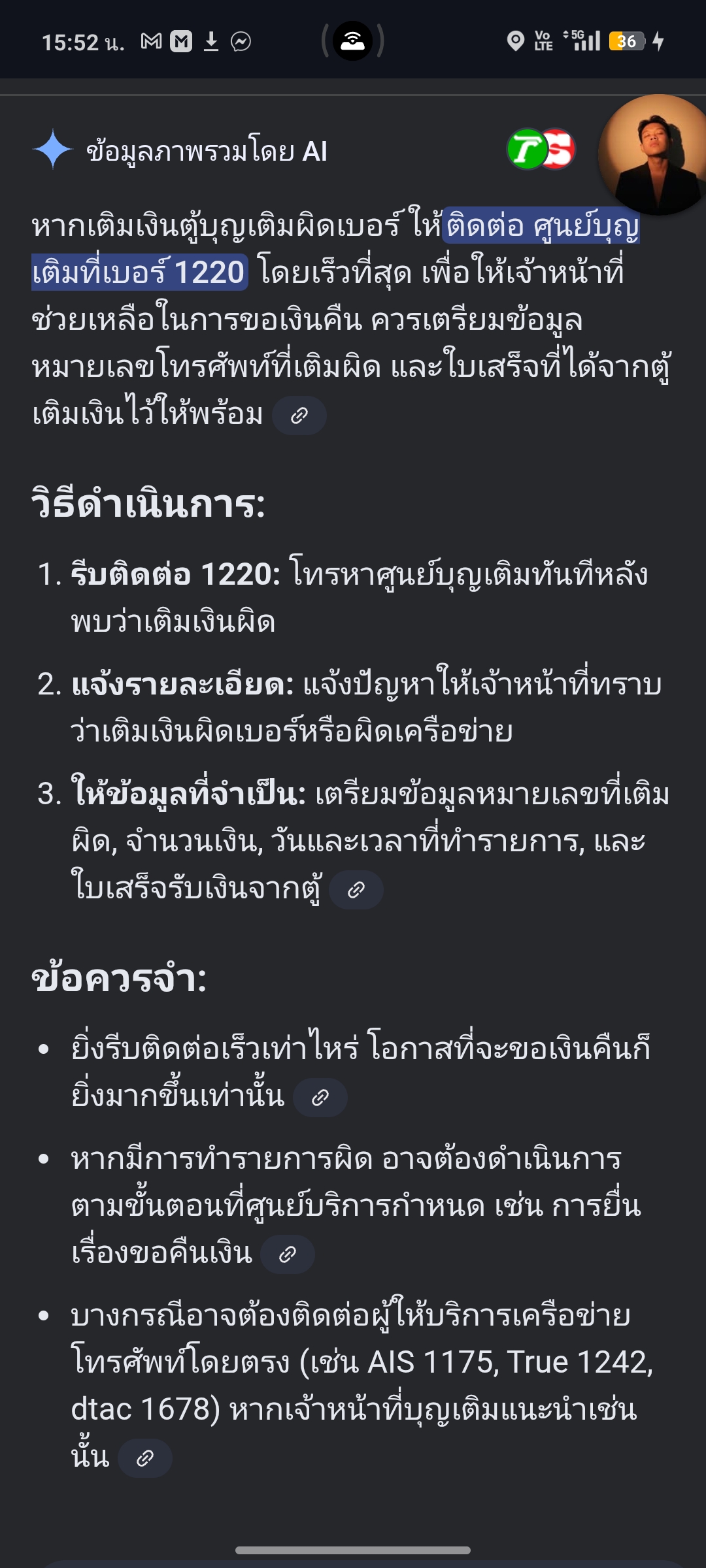 เติมเงินวอเลทที่ตู้บุญเติมผิดเบอร์ต้องทำยังไงคับ
