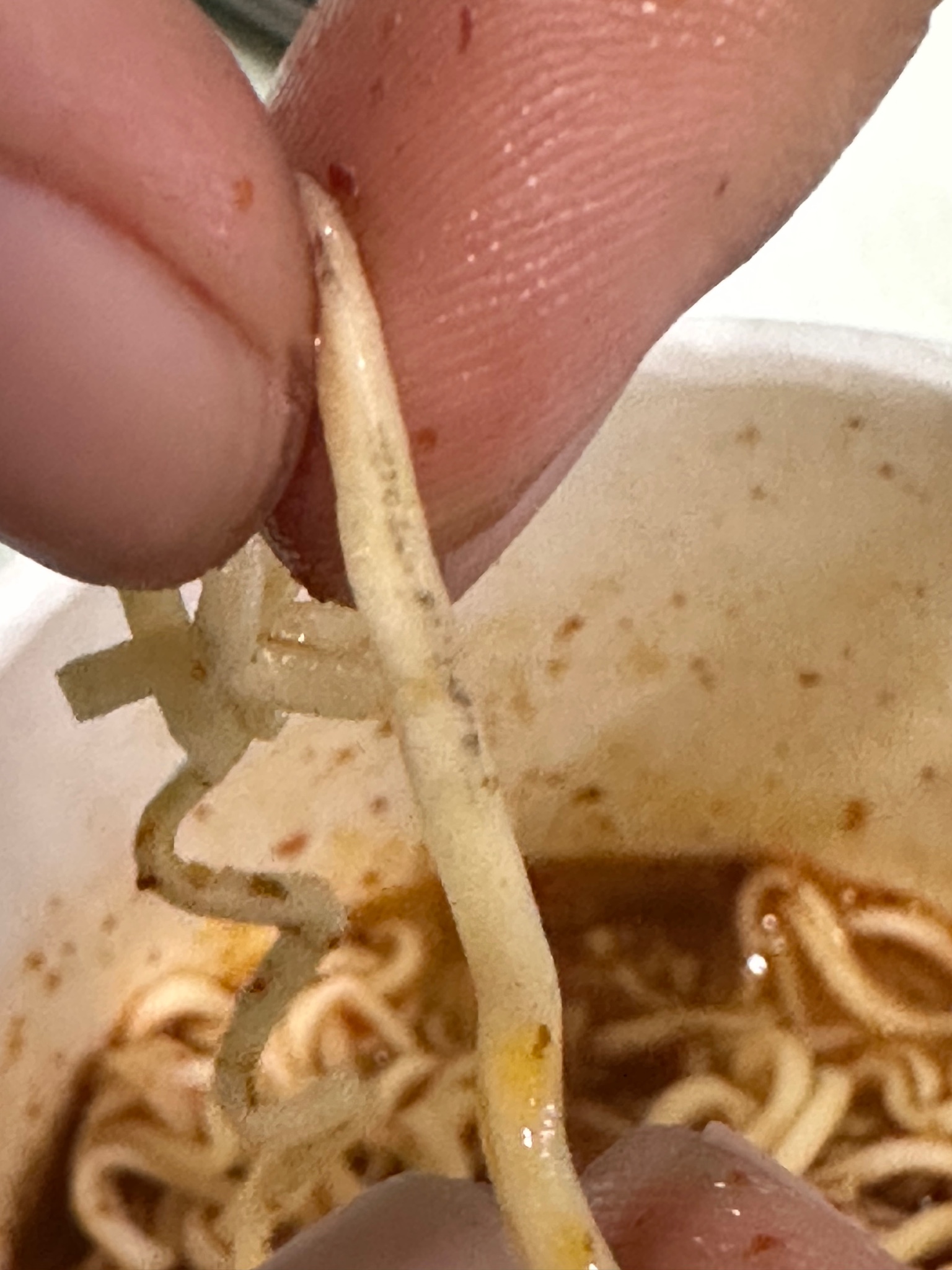 สวัสดีค่ะสมัครใช้งานครั้งแรก อยากรู้ว่าบะหมี่กึ่งสำเร็จรูป(เจ) ทึ่เส้นมีสีดำแบบนี้คือขึ้นรามั้ยคะ แต่ทิ้งไปแล้วเพราะรู้สึกไม่สบายใจ
