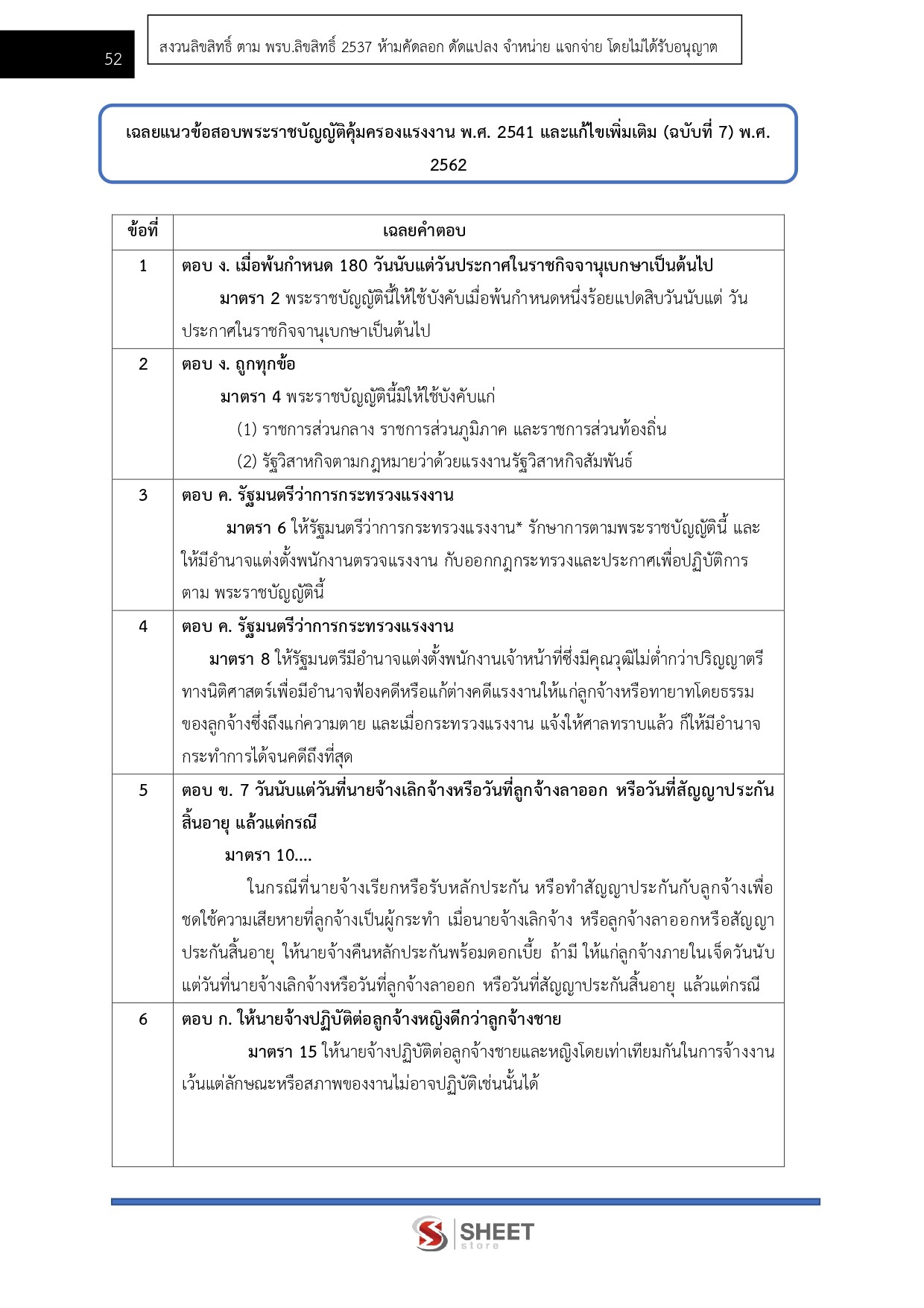 - แนวข้อสอบพระราชบัญญัติคุ้มครองแรงงาน พ.ศ.2541 และแก้ไขเพิ่มเติมถึง (ฉบับที่ 7) พ.ศ.2562