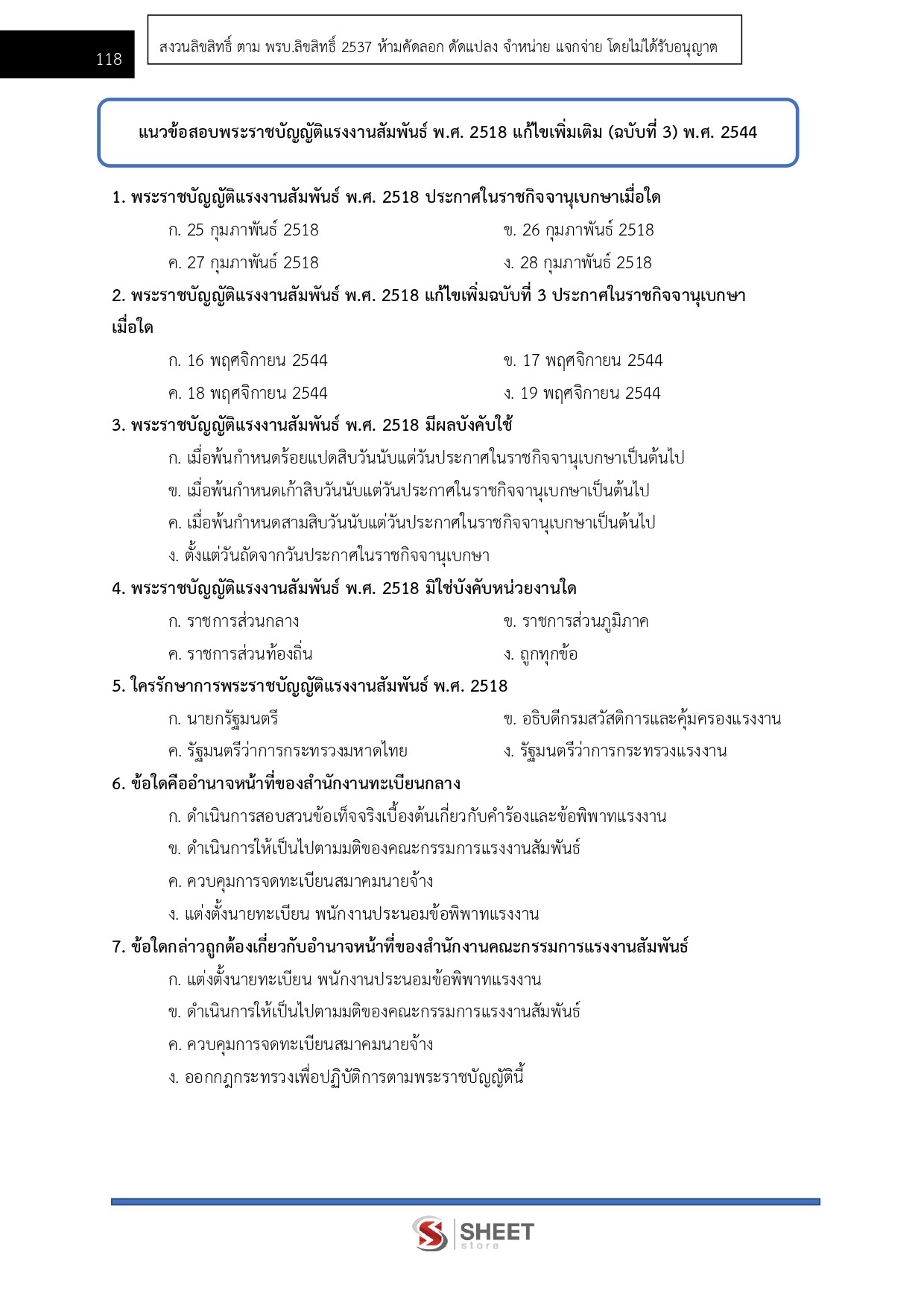 - แนวข้อสอบพระราชบัญญัติแรงงานสัมพันธ์ พ.ศ.2518 และแก้ไขเพิ่มเติมถึง (ฉบับ 3) พ.ศ.2544