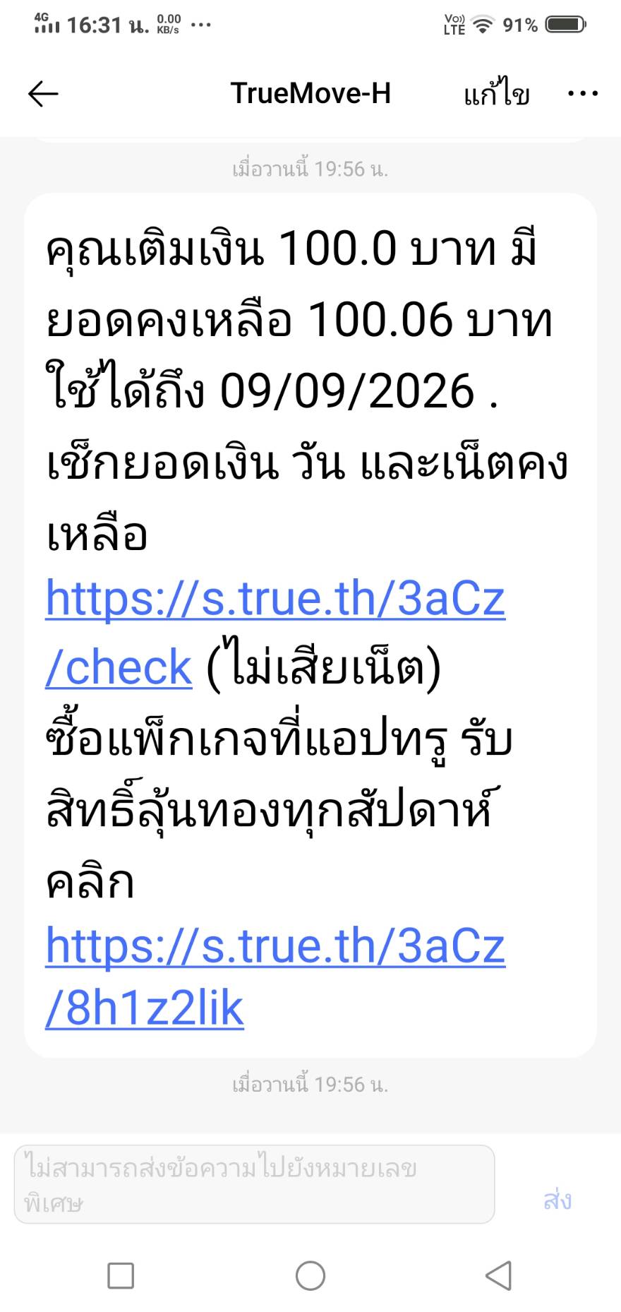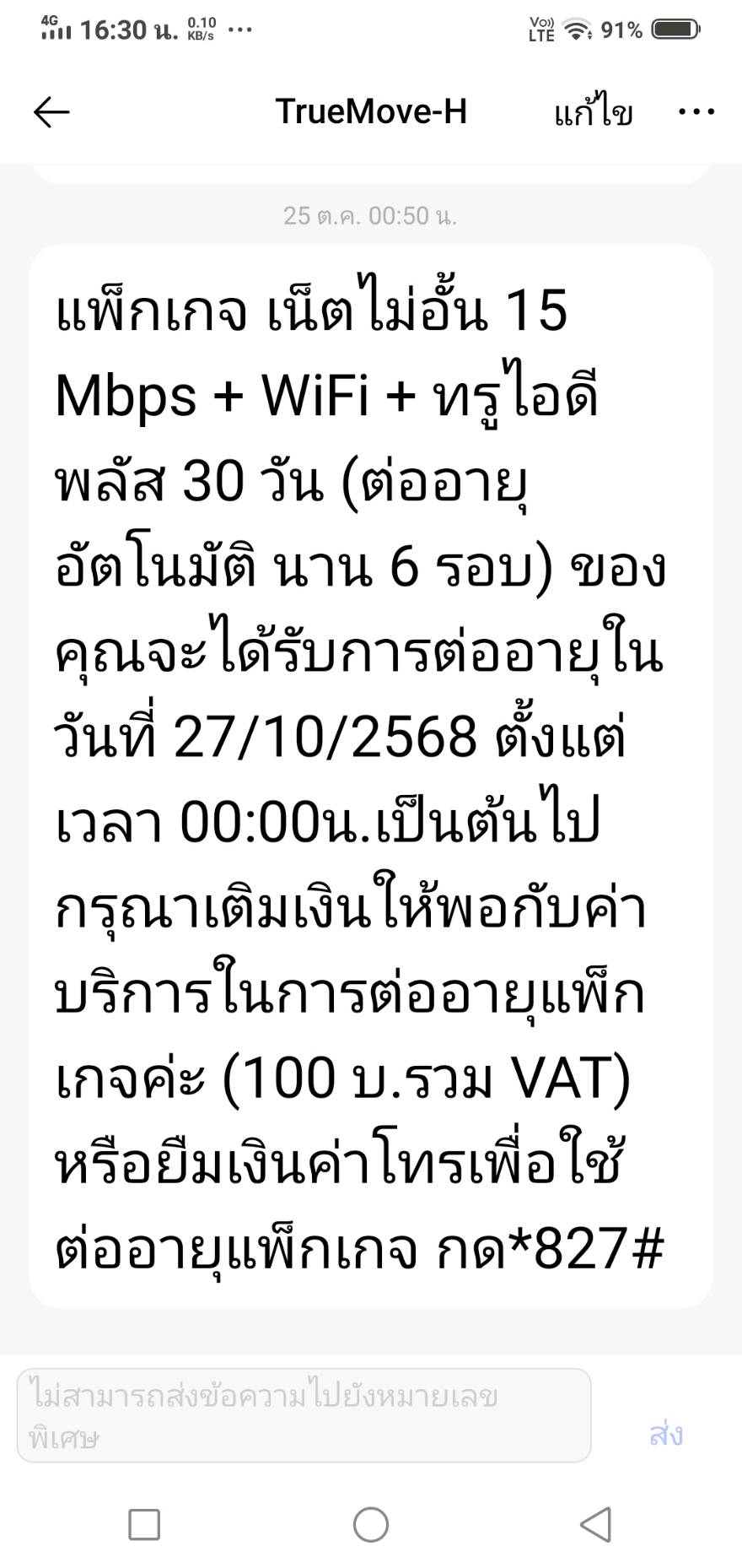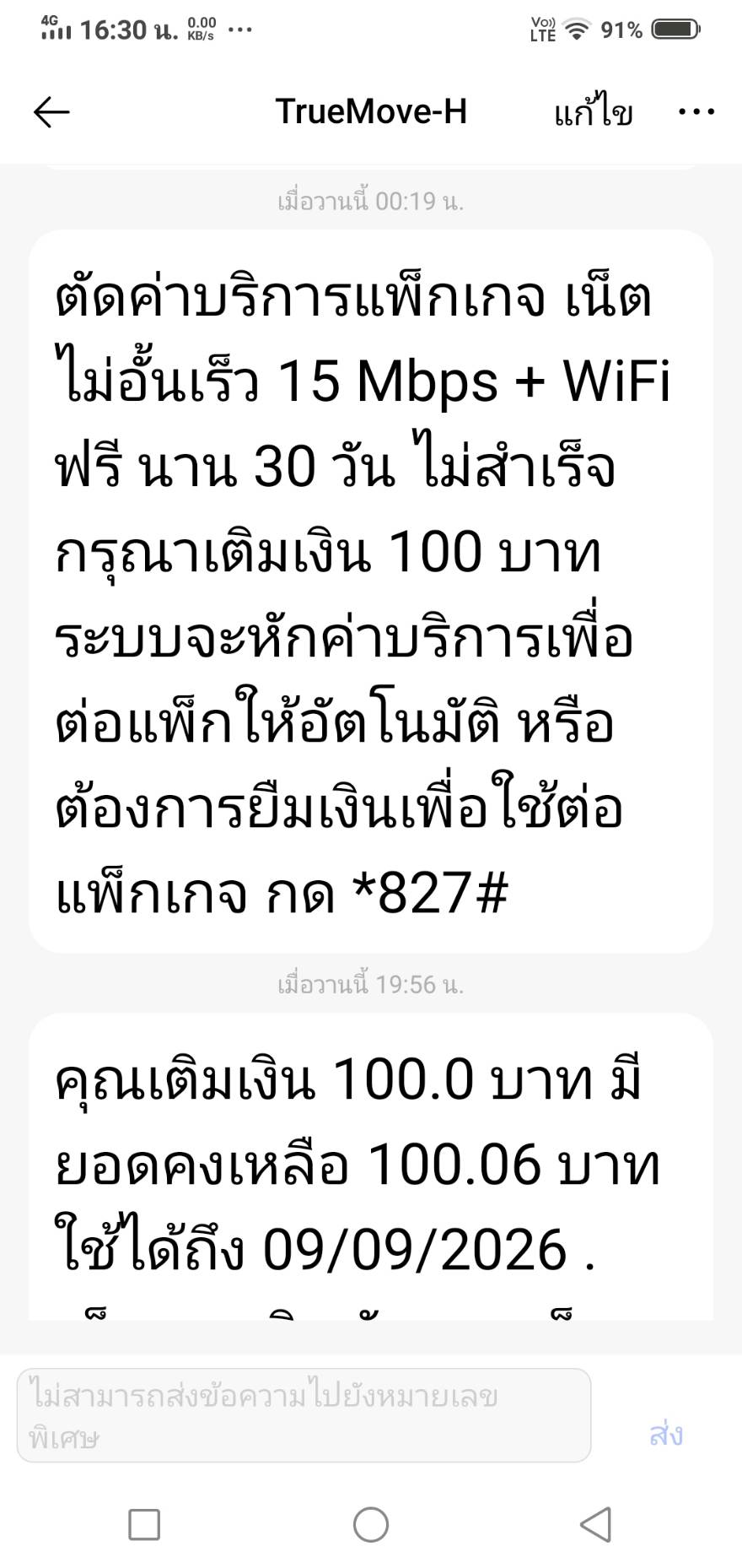 True ส่งข้อความมาให้เติมเงินให้พอค่าเน็ต แต่ก็ไม่ต่อแพ็กเกจให้ เหมือนหลอกกันนะแบบนี้