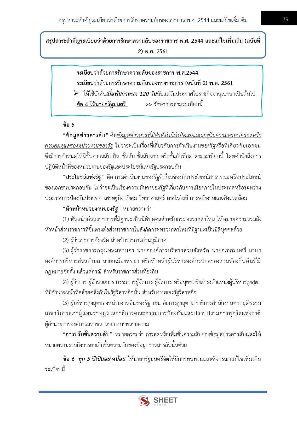 - แนวข้อสอบสรุประเบียบว่าด้วยการรักษาความลับของราชการ พ.ศ.2544 และแก้ไขเพิ่มเติม (ฉบับที่ 2) พ.ศ.2561