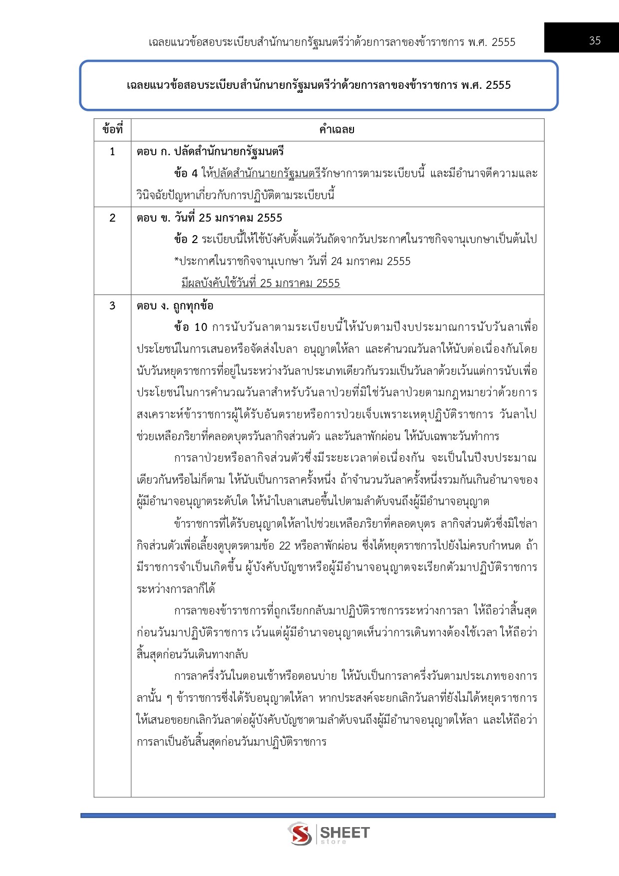 - แนวข้อสอบสรุประเบียบสำนักนายกรัฐมนตรีว่าด้วยการลาของข้าราชการ พ.ศ.2555