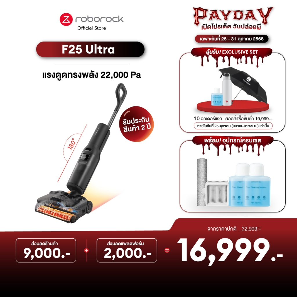 🌀🔥 เครื่องดูดฝุ่นถูพื้นไร้สาย Roborock F25 Ultra ดูดแรง 22000Pa น้ำร้อน 86°C HEPA H13 เหมาะบ้านมีสัตว์เลี้ยง 🌬️🧹