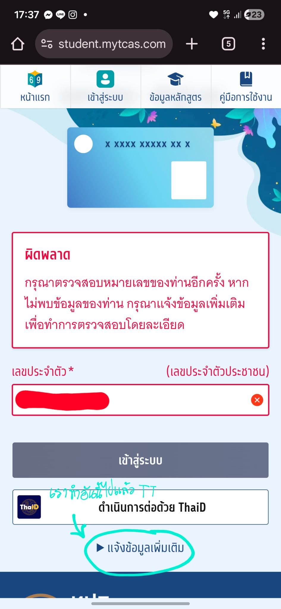 ตามหัวข้อกระทู้เลยค่ะ คือเราอยากรู้ว่ามันเป็นเพราะอะไรคะ เพื่อน ๆ ของเราก็ลงทะเบียนได้ตามปกติ มีแต่ของเราที่มันขึ้นแบบนี้ และตามในภาพเลยค่ะ เรารู้ว่ามันลงทะเบียนไม่ได้ มันขึ้นว่าผิดพลาด เราเลยทำอันที่เราวงกลมไว้ ซึ่งในนั้นให้ใส่อีเมล รูปถ่ายบัตรปชช. และถ่ายรูปถือบัตรปชช. เราทำไปแล้ว และกำลังรอทางระบบตอบกลับมา ประมาณ 72 ชม. เลยอยากรู้น่ะค่ะว่าเป็นเพราะสาเหตุอะไร… ปล.เรา dek69 เมคเฟรนกันหลังไมค์ได้นะคะ