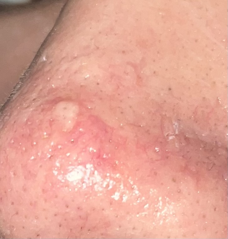 มีวันนึงเราเหมือนเป็นสิวประมาณ3-4เม็ดที่จมูกแล้วเราก็ไปแกพ่ สักพักมันกลายเป็นแบบนี้ค่ะ มันนคือเริมหรือสิวคะไม่เคยเป็นมาก่อนเลย