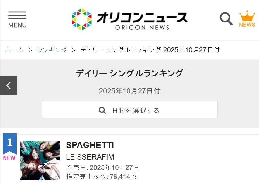 LE SSERAFIM 'SPAGHETTI' (ft. J-hope) เปิดตัวอันดับ 1 บน oricon chart ด้วยยอดขายวันแรกที่ญี่ปุ่น 76,414 บั้ม
