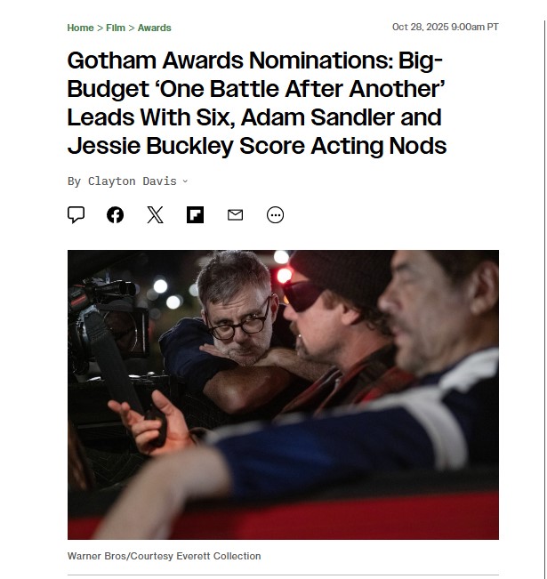 การประกาศรายชื่อผู้เข้าชิงรางวัล Gotham Award ประจำปี 2025 ; One Battle After Another เข้าชิงมากที่สุด 6 รางวัล