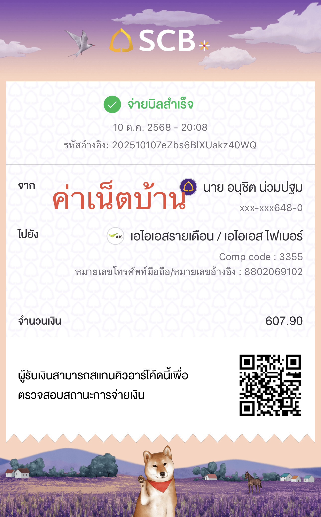 Ais Fibre พึ่งชำระวันที่ 10/10/2025 ช่วยเปิดสัญก่อนได้ไหมครับ
