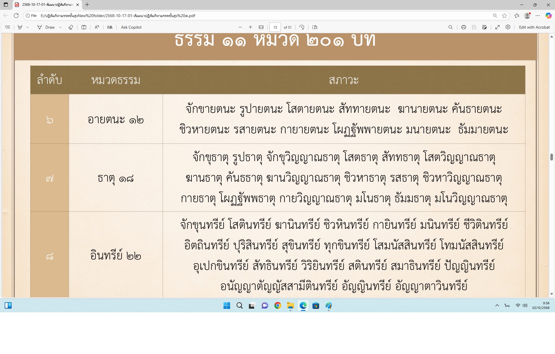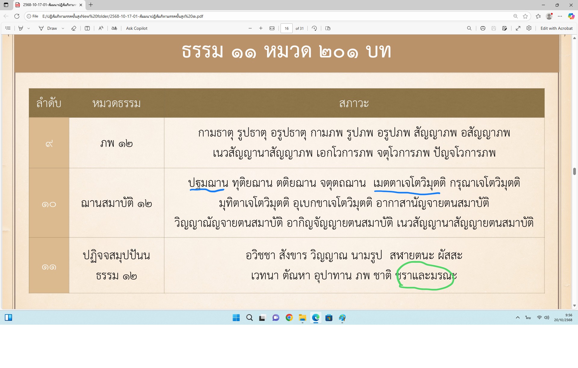 ปัจจุบันนี้ พยายามบันทึกการสอนเรื่อง ปัฏฐาน ให้ครบ 17 บท ตอนนี้ใกล้จบบทที่ 15 อีกไม่กี่หน้า และเหลืออีก 100 หน้าเพื่อบันทึกบทที่ 16 บทที่ 17 ให้สมบูรณ์