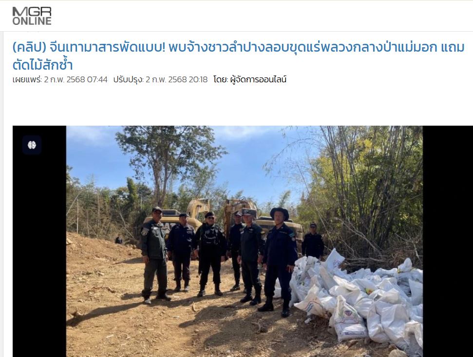จีนเทามาสารพัดแบบ! พบจ้างชาวลำปางลอบขุดแร่พลวงกลางป่าแม่มอก แถมตัดไม้สักซ้ำ