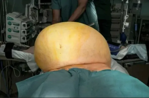 การผ่าตัดกินเวลายาวนานถึง 10 ชั่วโมง เพื่อเอาเนื้องอกขนาดมหึมาจากช่องท้อง ซึ่งมีน้ำหนักถึง 27 กิโลกรัม