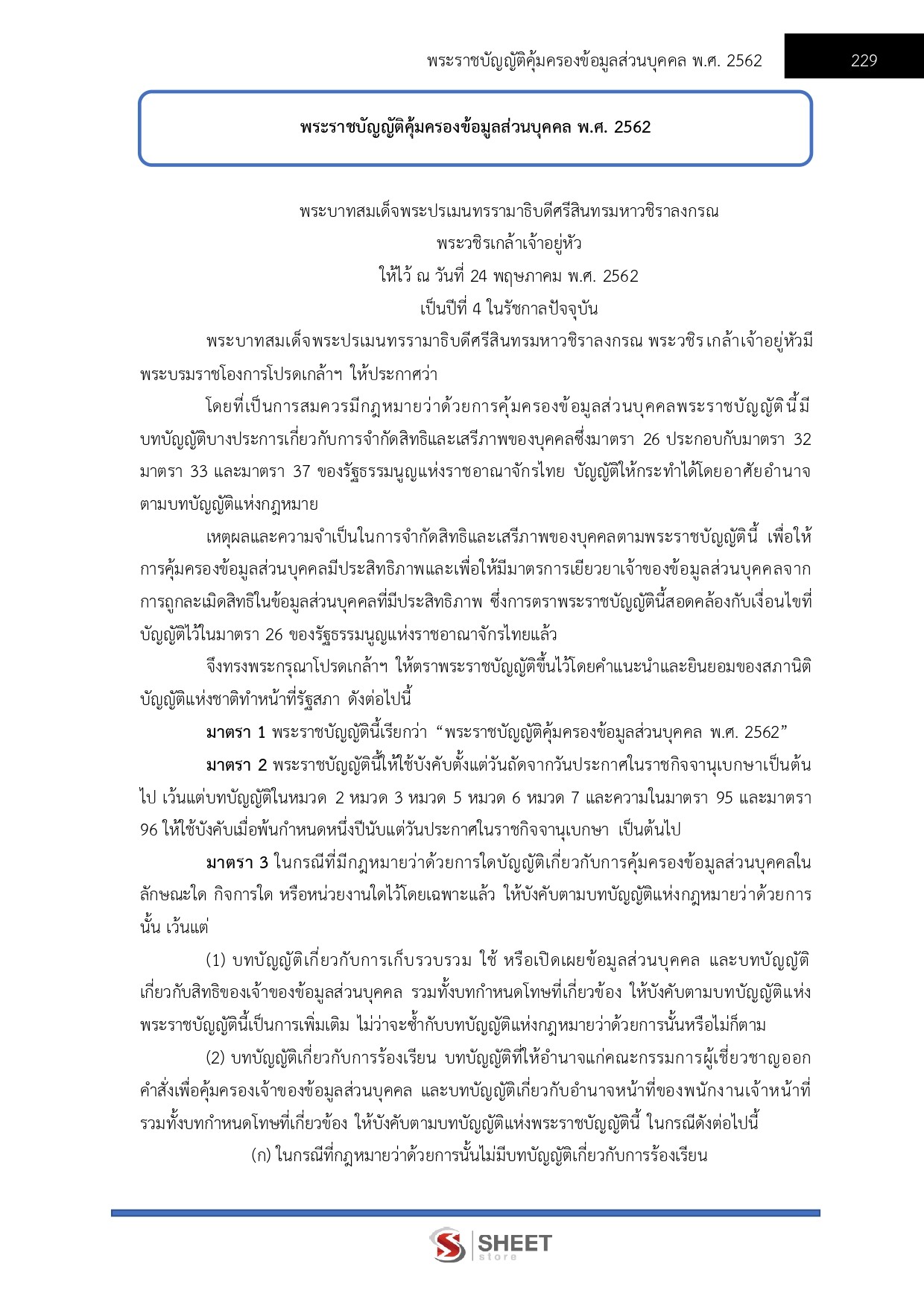 – พระราชบัญญัติคุ้มครองข้อมูลส่วนบุคคล พ.ศ. 2562