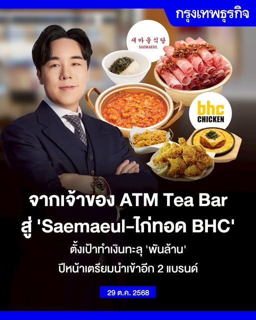 จากเจ้าของ “ATM Tea Bar” สู่เจ้าของแฟรนไชส์ “Saemaeul – BHC Chicken” ตั้งเป้าทำเงินทะลุ “พันล้าน” ปีหน้า พร้อมเตรียมนำเข้าอีก 2 แบรนด์!