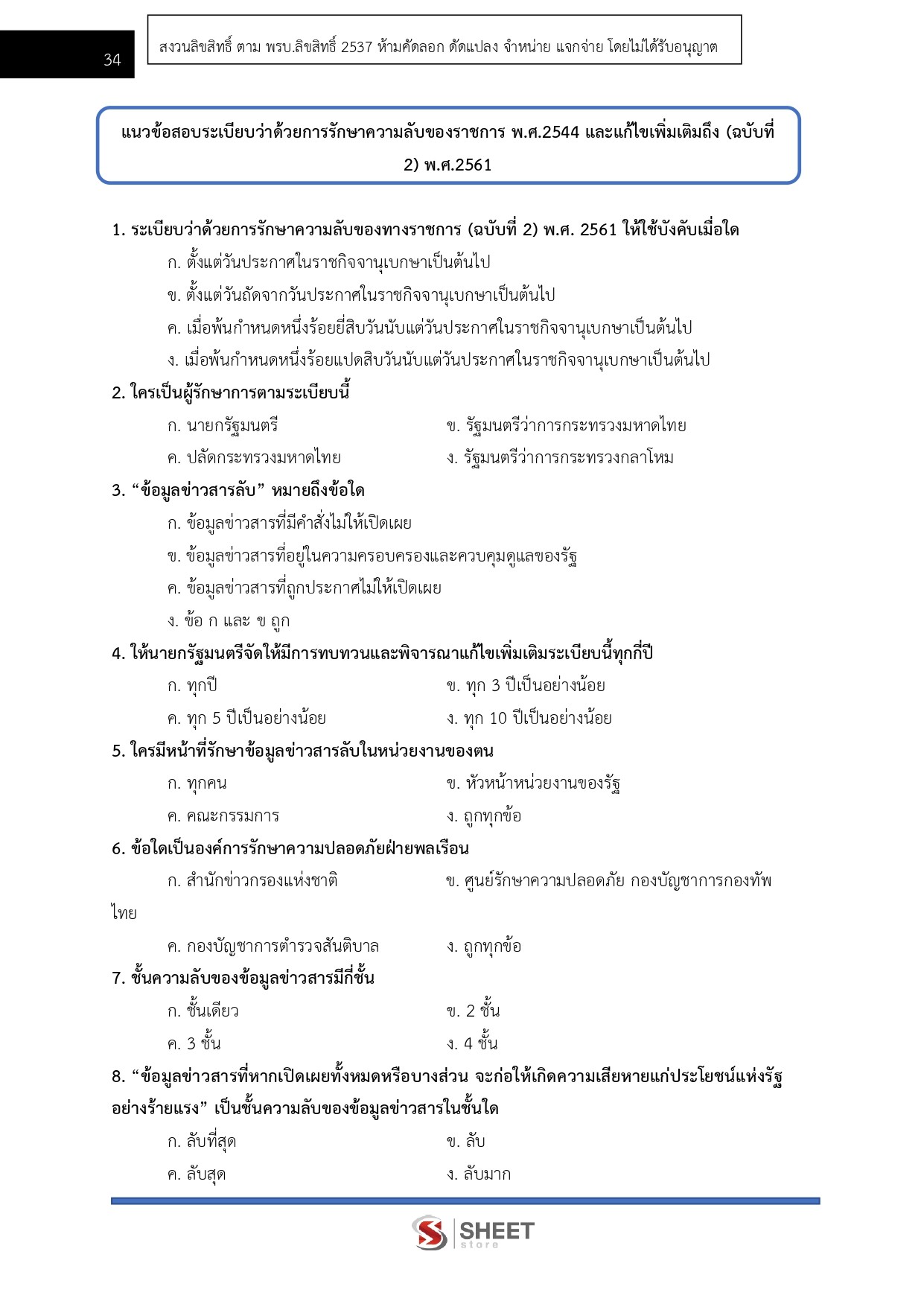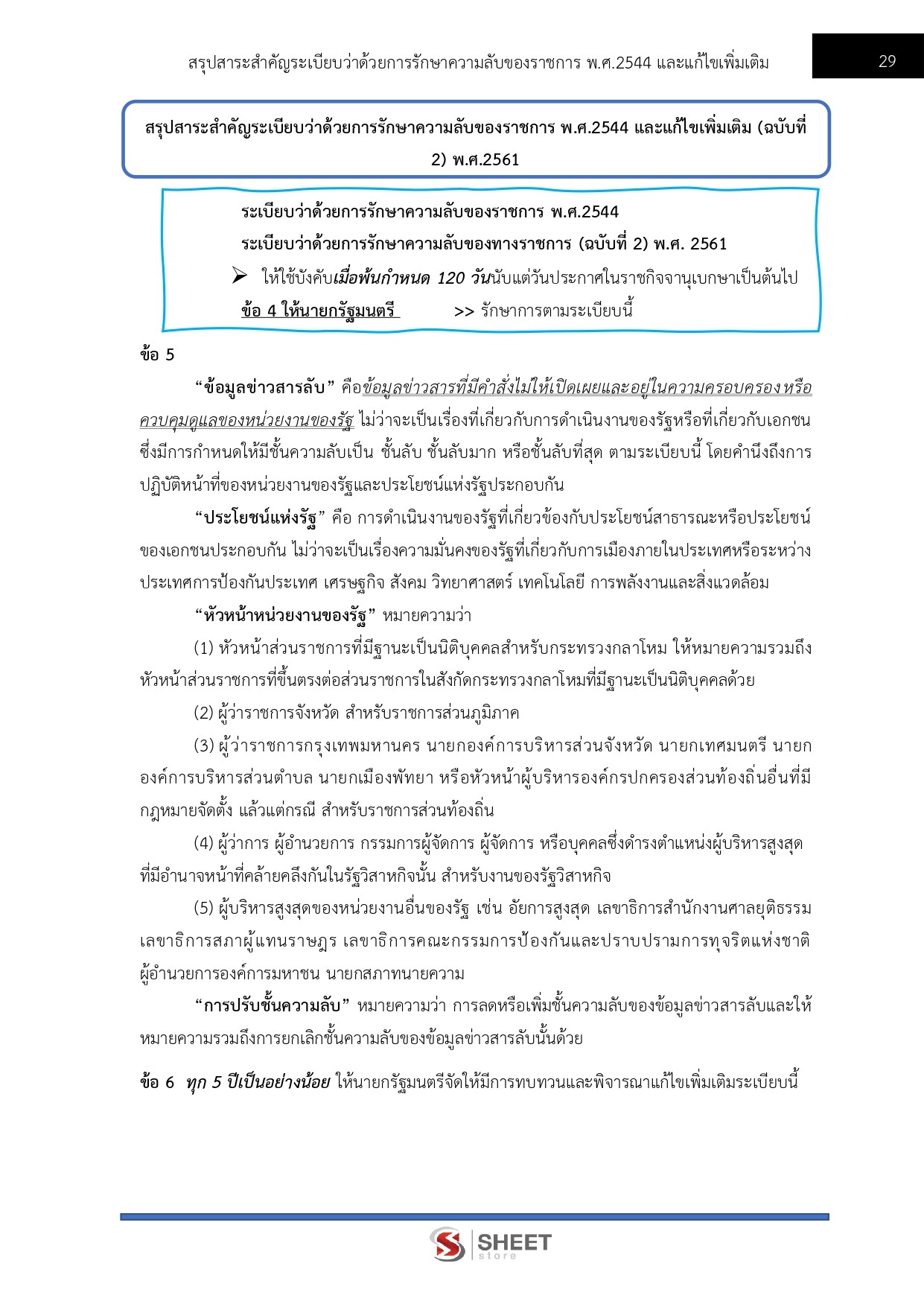 – แนวข้อสอบสรุประเบียบว่าด้วยการรักษาความลับของราชการ พ.ศ. 2544 และแก้ไขเพิ่มเติม (ฉบับที่ 2) พ.ศ. 2561