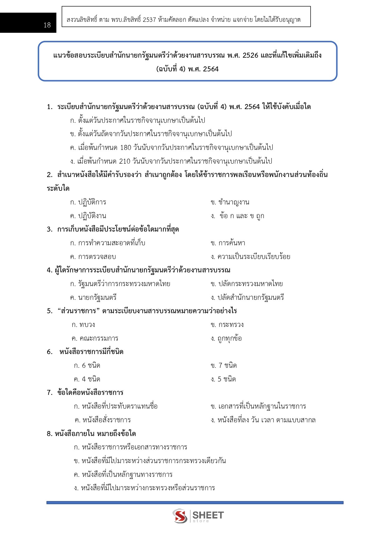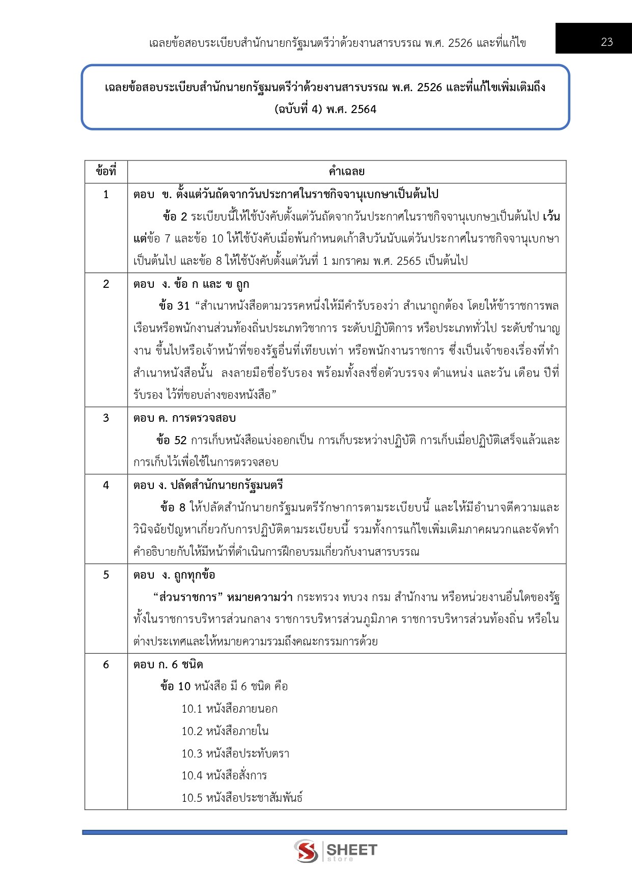 – แนวข้อสอบสรุปสาระสำคัญระเบียบสำนักนายกรัฐมนตรีว่าด้วยงานสารบรรณ พ.ศ. 2526 และที่แก้ไขเพิ่มเติมถึง