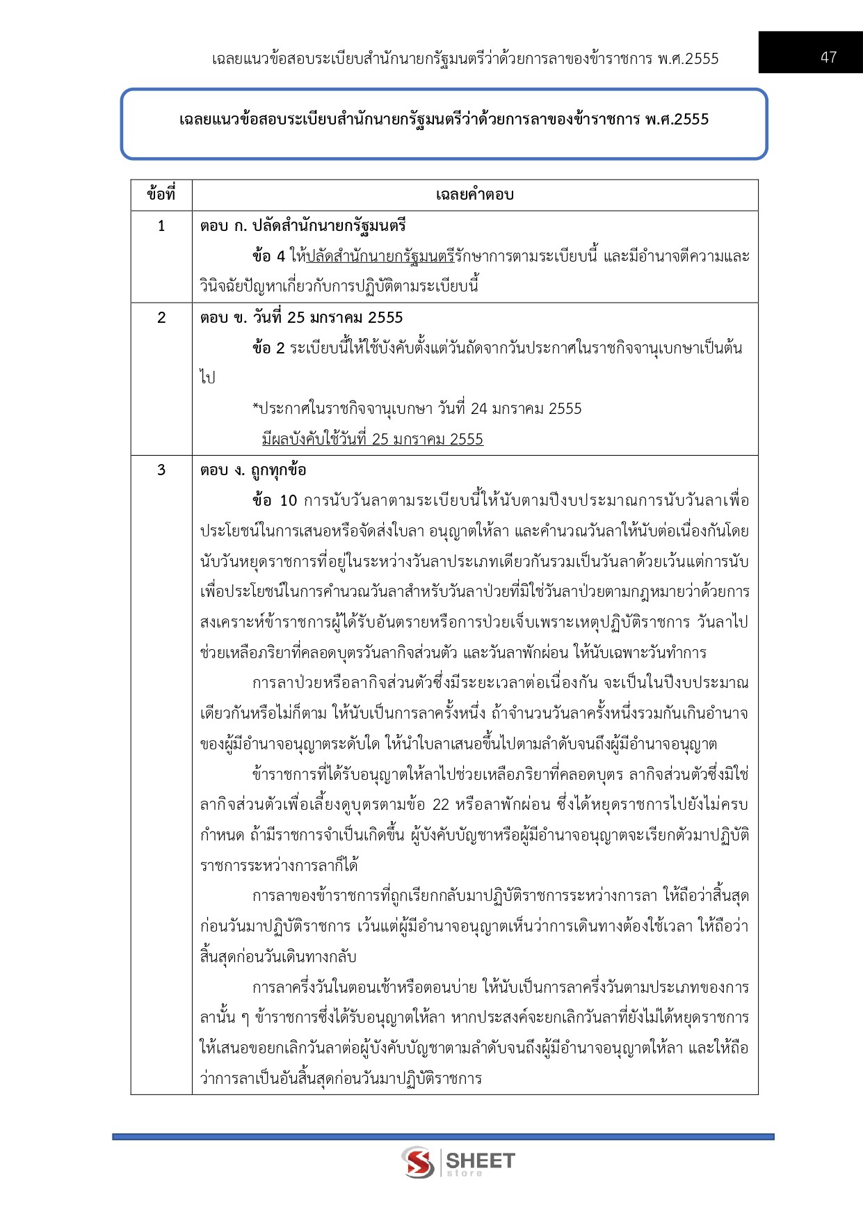 – แนวข้อสอบสรุประเบียบสำนักนายกรัฐมนตรีว่าด้วยการลาของข้าราชการ พ.ศ. 2555