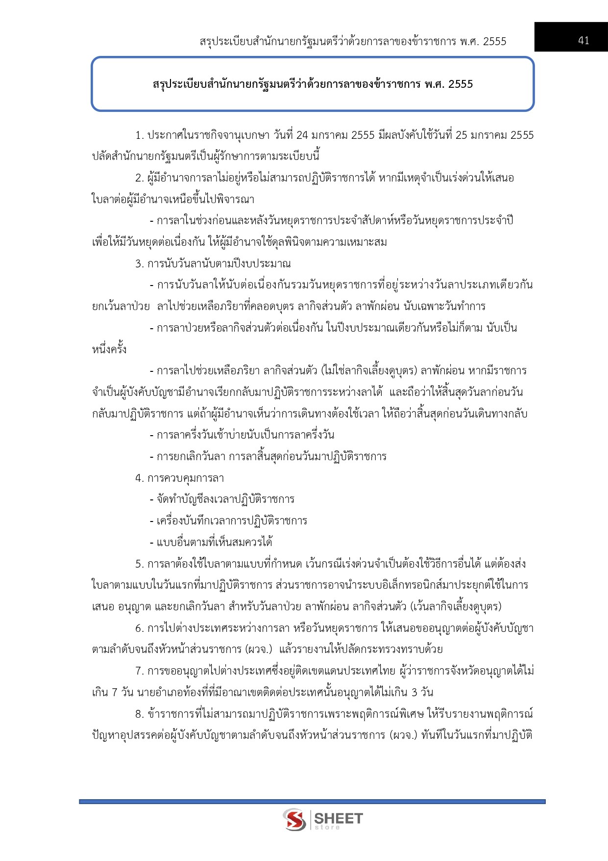 – สรุประเบียบสำนักนายกรัฐมนตรีว่าด้วยการลาของข้าราชการ พ.ศ. 2555