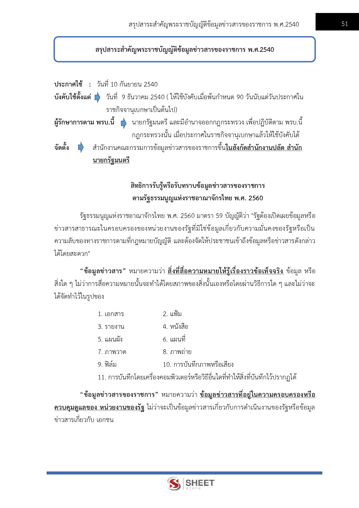 – แนวข้อสอบสรุปสาระสำคัญพระราชบัญญัติข้อมูลข่าวสารของราชการ พ.ศ. 2540