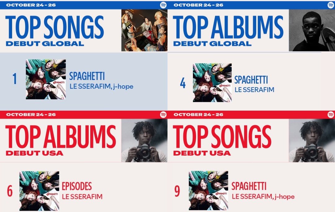 [LE SSERAFIM] 'SPAGETTHI (ft. j-hope of BTS)' ทำนิวพีคหลายชาร์ตประเทศจีนและ Spotify Top Songs Debut Chart 🍝