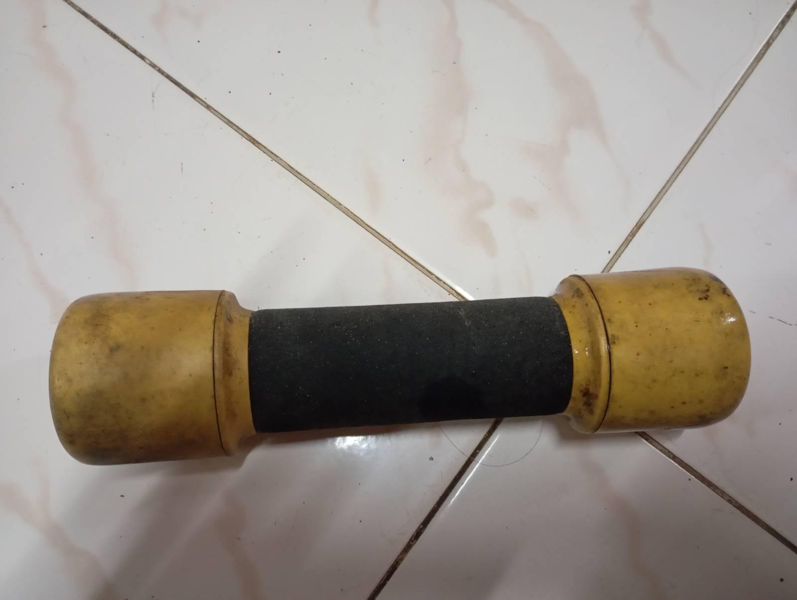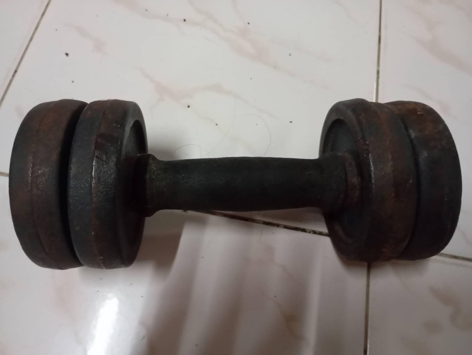 ดัมเบลที่ผมใช้เลยมีสภาพแบบครึ่งปูนครึ่งเหล็กแบบนี้ละ (ดูใหญ่แต่ไม่หนักนะ ใหญ่เพราะแผ่นปูน)