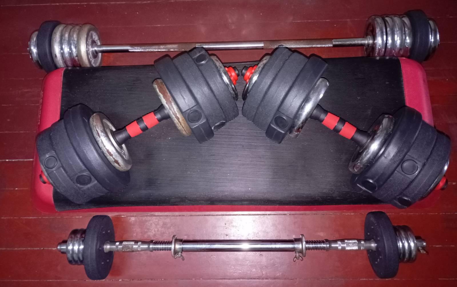 ทั้งดัมเบลและบาร์เบลที่ใช้คือใส่น้ำหนักเพิ่มจากแผ่นที่มีไม่ได้แล้วครับ ต้องเหลือพื้นที่ให้ตัวล็อคด้วย