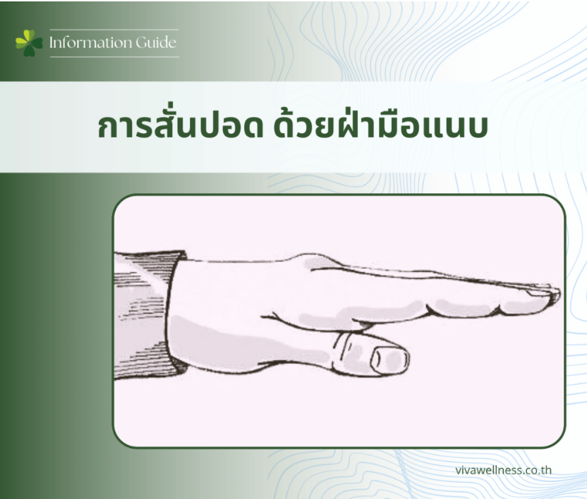 - เหยียดแขนทั้งสองข้างให้ตรง มือทั้งสองข้างทาบกับบริเวณที่ต้องการสั่นปอด รอผู้ป่วยเริ่มหายใจออก จากนั้นเกร็งแขนทั้งสองข้างให้เกิดการสั่นผ่านไปยังฝ่ามือ แล้วลงไปที่ทรวงอกของผู้ป่วย