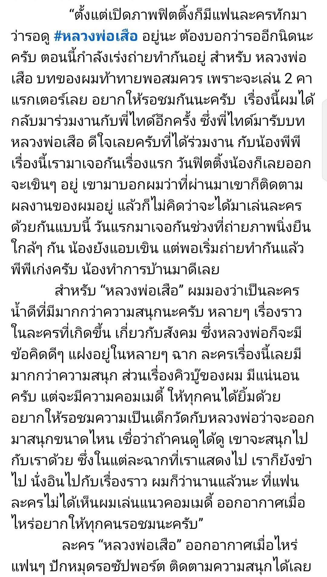 หลวงพ่อเสือ ละครหลังข่าวเรื่องใหม่ นอกจากพระเอก อ๊อฟ ชนะพล ได้นางเอกละครเย็น พีพี และริส ร่วมแสดง