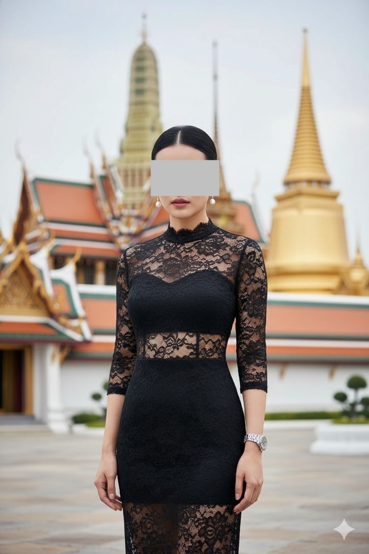ผ้าลูกไม้ (Lace): หากเป็นลูกไม้ที่มีซับในเรียบร้อยอาจพออนุโลมได้ แต่ถ้าเป็นลูกไม้ที่โปร่งและเน้นความเซ็กซี่ ควรหลีกเลี่ยง