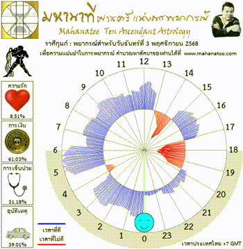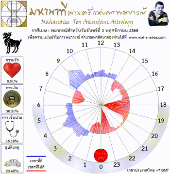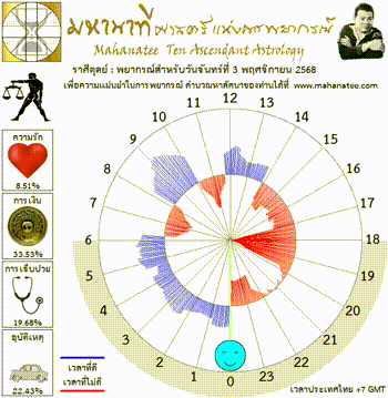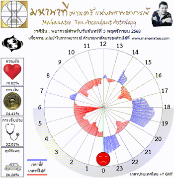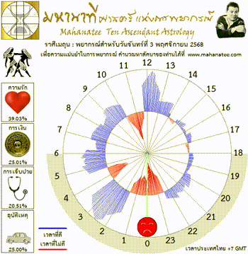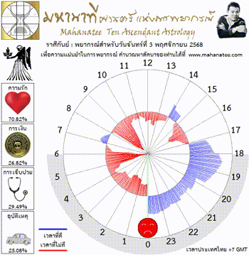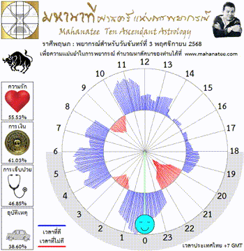 แผนภูมิและพยากรณ์ 12 ราศี สำหรับ วันจันทร์ที่ 3 พฤศจิกายน 2568