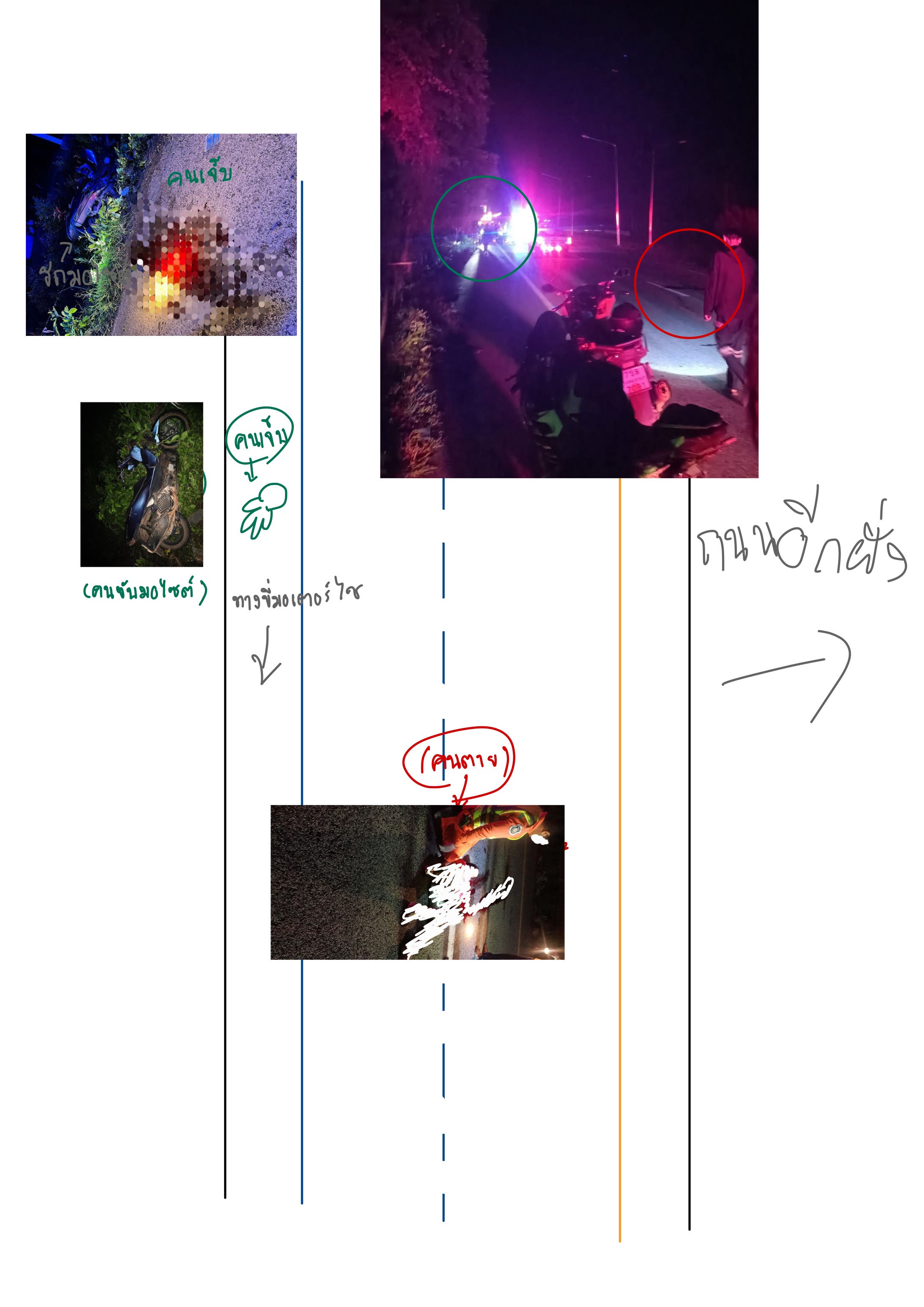 มีเรื่องอยากปรึกษาหน่อยทุกคน กรณีรถชนคนเดินเท้า รถจักรยานยนต์(ผู้บาดเจ็บ) เล่าว่ารถยนต์เป็นคนชนคนเดินเท้า(ตาย) แล้วผู้บาดเจ็บมาชนท้ายรถยนต์ แถวนั้นไม่มีกล้องวงจรปิด ไม่มีใครเห็นเหตุการณ์ยกเว้นผู้บาดเจ็บ แถวนั้นมืดไม่มีไฟ คุณคิดเห็นยังไงกับกรณีนี้ ใครชนกันแน่?