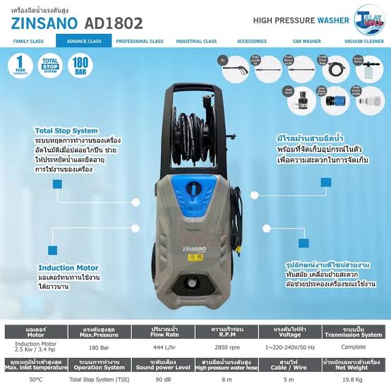 Ad1802 มีแรงดัน 180 bar อัตราการไหลของน้ำ อยู่ที่ 444 L/hr
