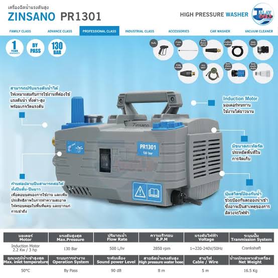 ส่วน pr1301 มีแรงดัน 130 bar มีอัตราการไหลของน้ำอยู่ 500L/hr
