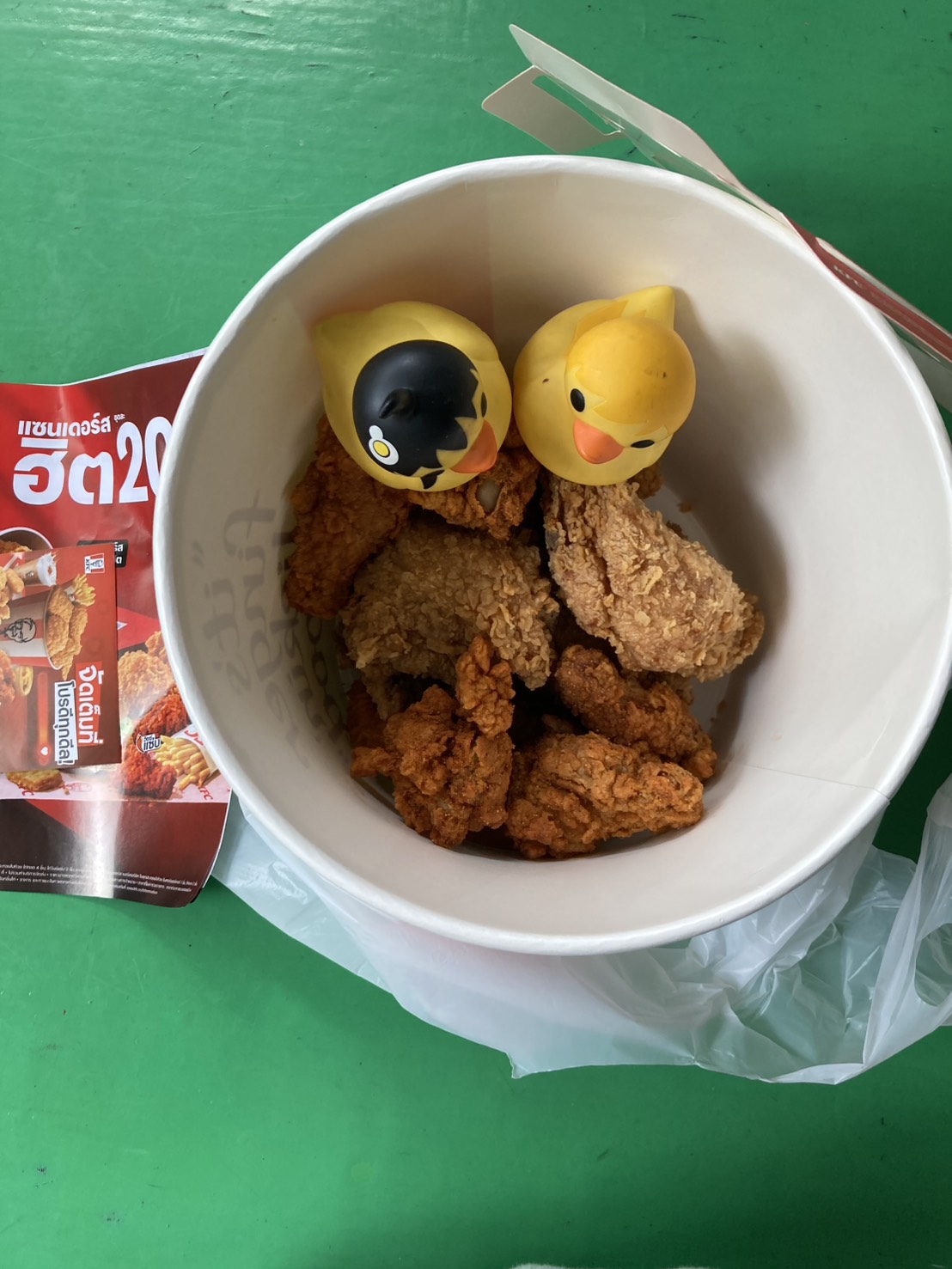 สบายท้อง แวะซื้อไก่ KFC ให้น้อง พนักงานยืนเรียงต้อนรับ ไม่มีคนในร้านเลย เข้าไปสั่งปุ๊บได้ไก่เลยไม่ต้องรอ