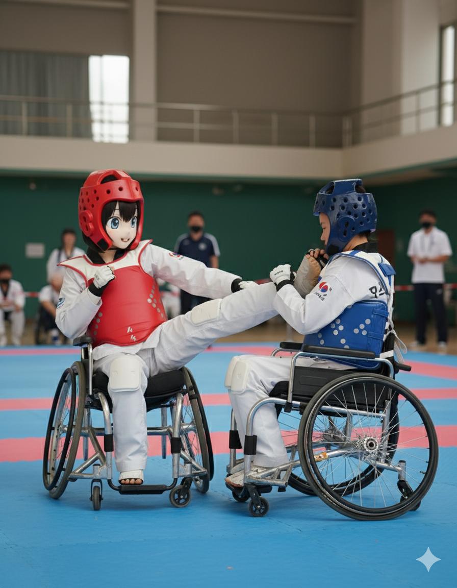 ถ้าเราจะ ดัดแปลง กีฬาเทควันโดประเภทเคียวรูกิ (ต่อสู้) ให้เป็นรูปแบบที่เหมาะสำหรับผู้ที่นั่งวีลแชร์ (Wheelchair Kyorugi) โดยสมมติว่าเป็นการพัฒนาเป็นกีฬาใหม่หรือเป็นกิจกรรมที่ปรับให้เข้ากับท้องถิ่น จะต้องมีการปรับเปลี่ยนกติกาและอุปกรณ์อย่างมีนัยสำคัญ เพื่อให้เกิดความยุติธรรม ปลอดภัย และยังคงจิตวิญญาณของเทควันโดไว้ค่ะ