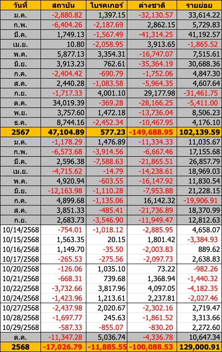 Sinthorn Summary 24/10/2568 : ต่างชาติขายสุทธิ -2,302.16 ลบ.