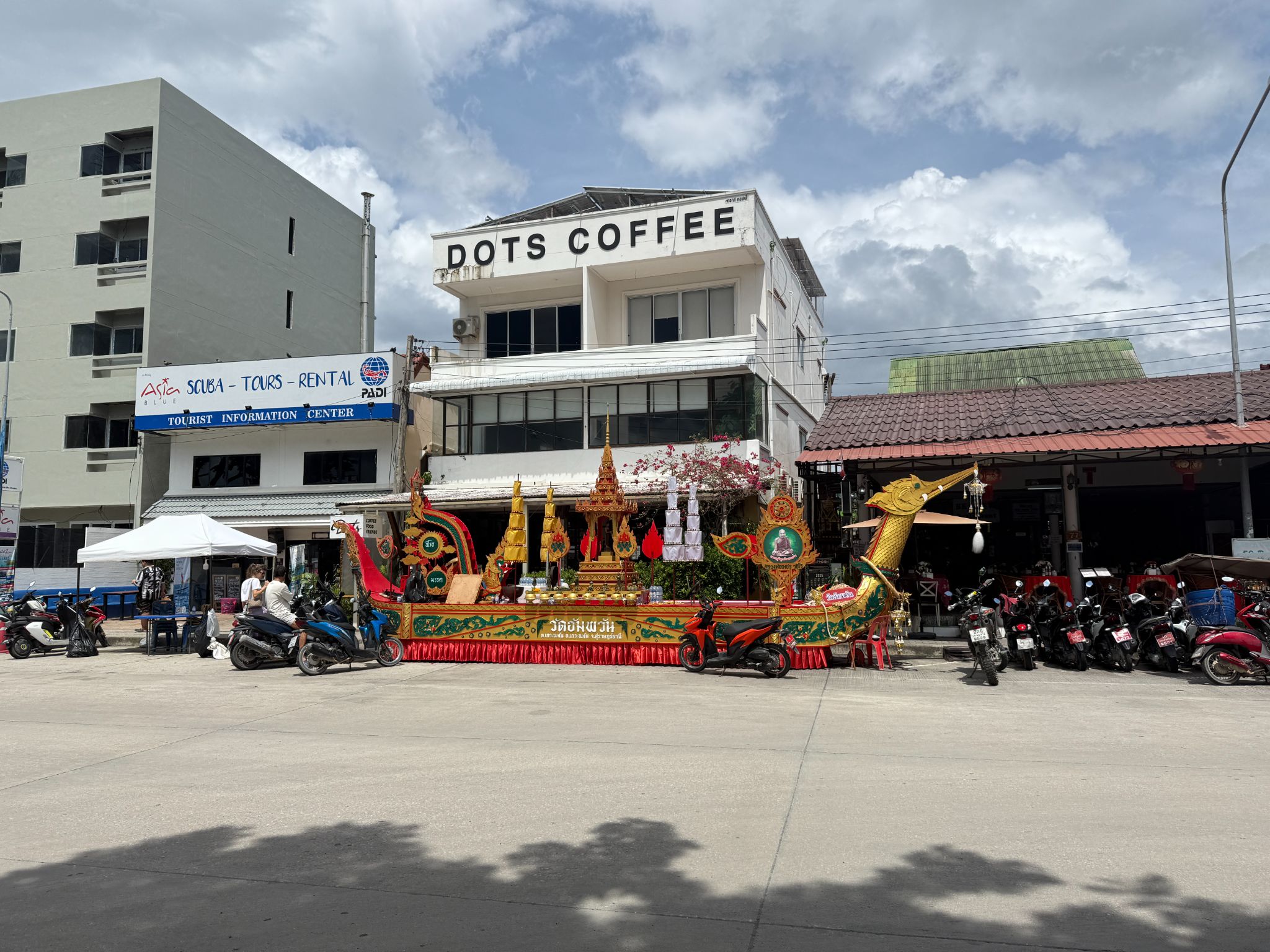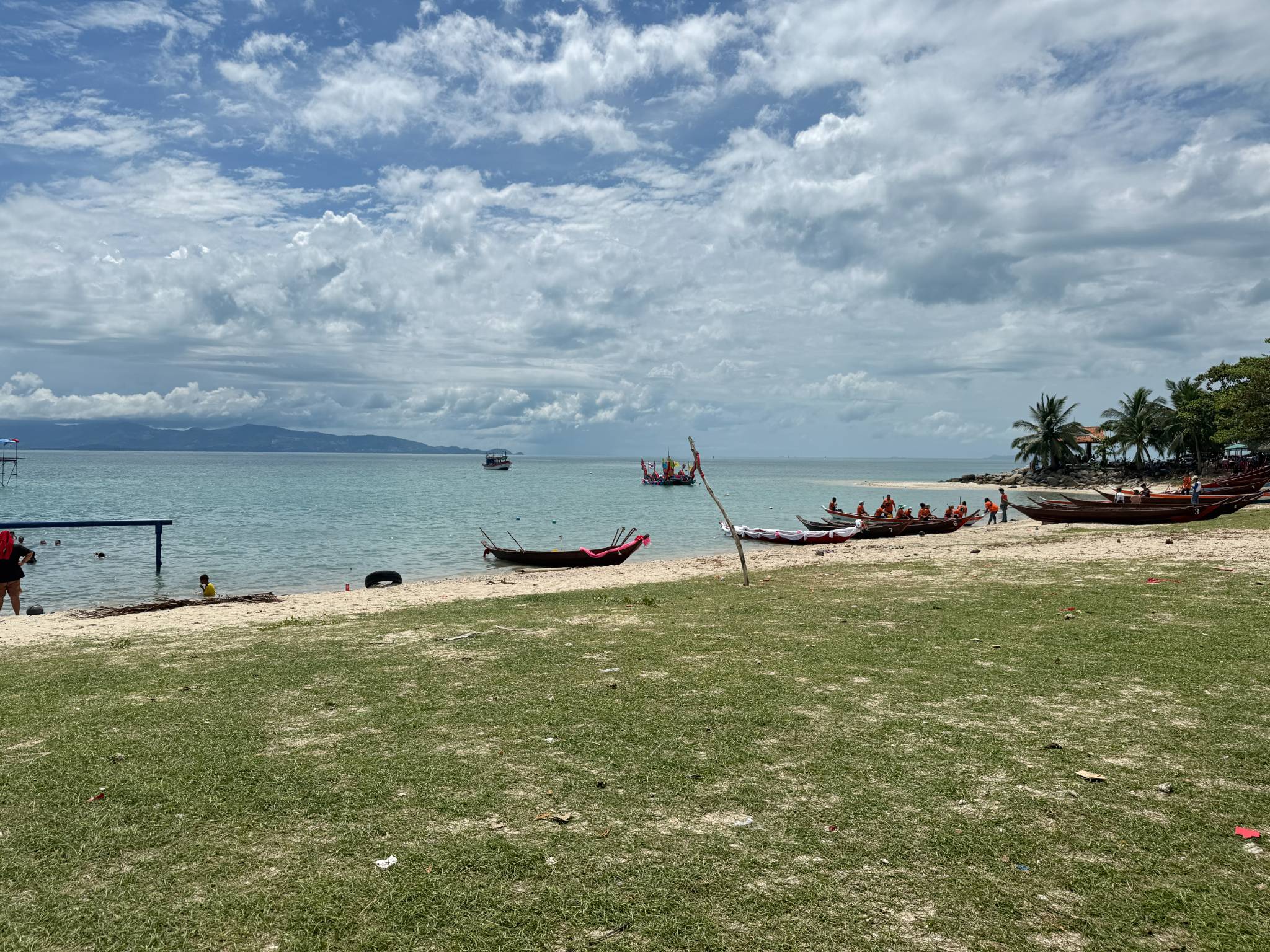 ⏰ 12.30 น. หลังจากอิ่มท้องจากมื้อเที่ยงแล้ว พวกเราได้ไปร่วมงานประเพณีสำคัญของชาวเกาะพะงัน คือ ประเพณีชักพระ พวกเราไปตรงพอดีกับช่วงที่ชาวบ้านกำลังแข่งขันพายเรือรอบแกรนด์ไฟนอล บอกเลยว่าบรรยากาศคึกคัก สนุกสนานสุด ๆ ชาวบ้านเป็นกันเองและอบอุ่นมาก