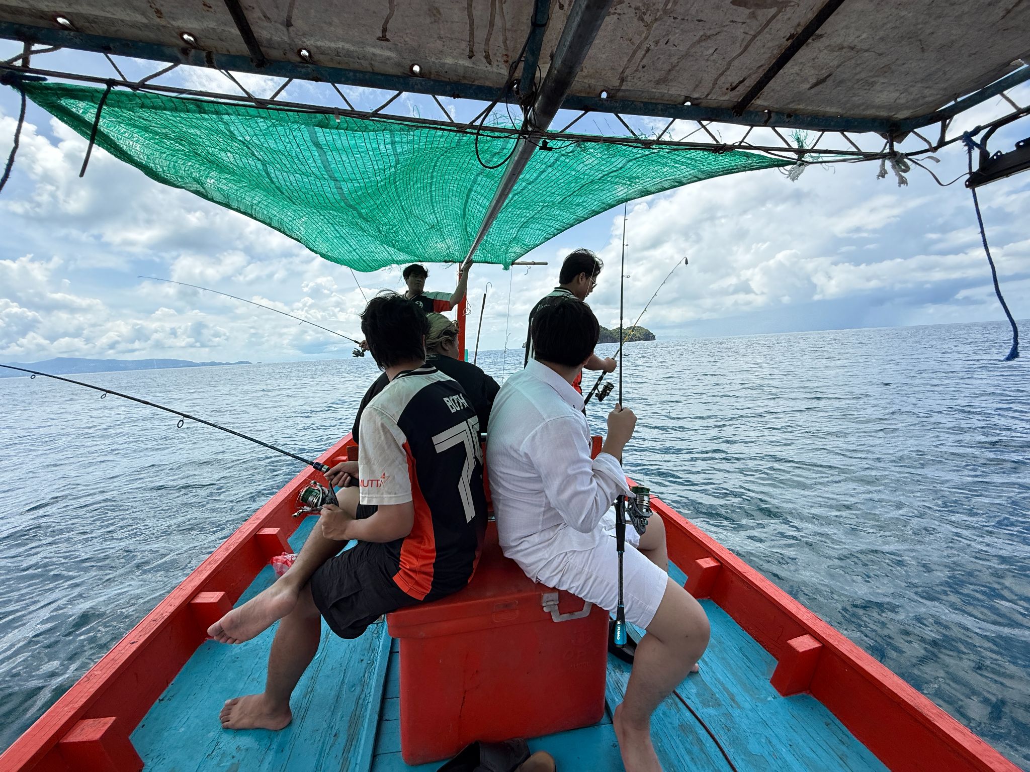 ช่วงแรกไม่มีใครตกปลาได้เลย แอบท้อกันนิด ๆ แต่พอผ่านไปสักพักก็เริ่มตกได้ทีละคน ความสนุกจึงเริ่มขึ้น สนุกจนไม่อยากเลิกตกกันเลย เหมือนมาให้อาหารปลามากกว่าตกปลา เพราะเหยื่อหายไวมาก ทะเลวันนี้สวยมากกกก