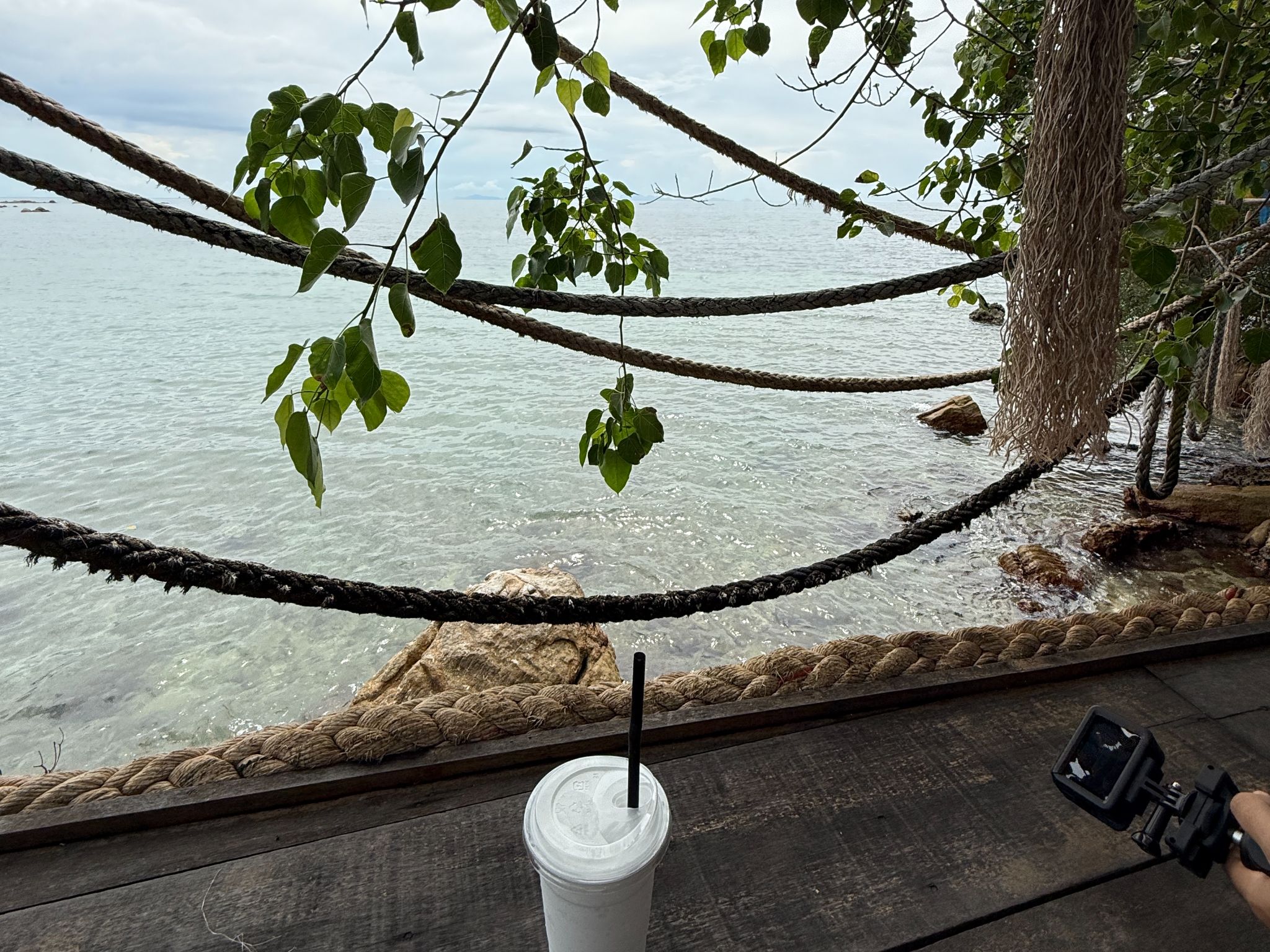 ⏰ 14.20 น. เกาะที่เหมาะกับการดำน้ำ น้ำใสแบบเห็นปลาด้านล่าง แต่เสียดายเพราะเวลาของเราน้อยเหมือนเดิม พวกเราแวะนั่งกินลมชมวิว สั่งน้ำกันคนละแก้วเติมพลังเพื่อไปสถานที่ต่อไป