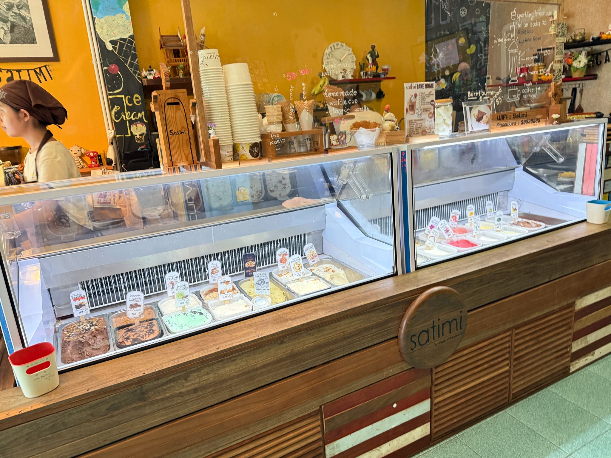 13.30 น. หลังจากชมการแข่งขันพายเรือเสร็จ พวกเราเดินเล่นต่อบนถนนเพื่อชมขบวนเรือของแต่ละตำบล และแวะหาของกินตามร้านต่าง ๆ ระหว่างทางไปเจอร้านไอศกรีมร้านหนึ่ง อร่อยมากก เนื้อไอศกรีมนุ่มละมุน ฟินสุด ๆ