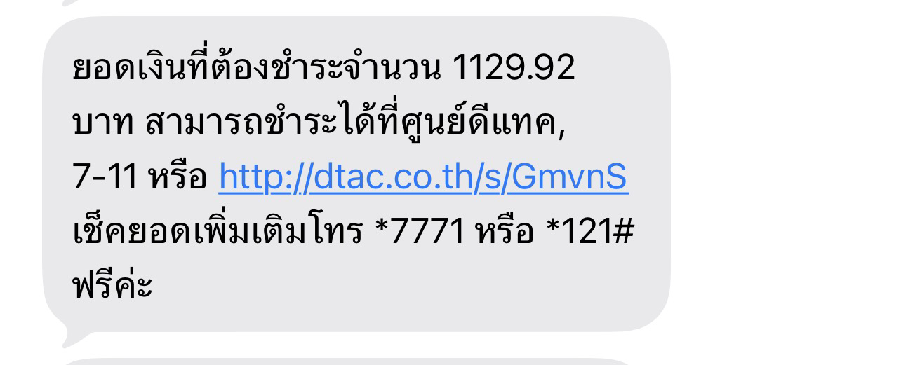 ค้างชำระ ซิมรายเดือนDtac แล้วมีจดหมายมา