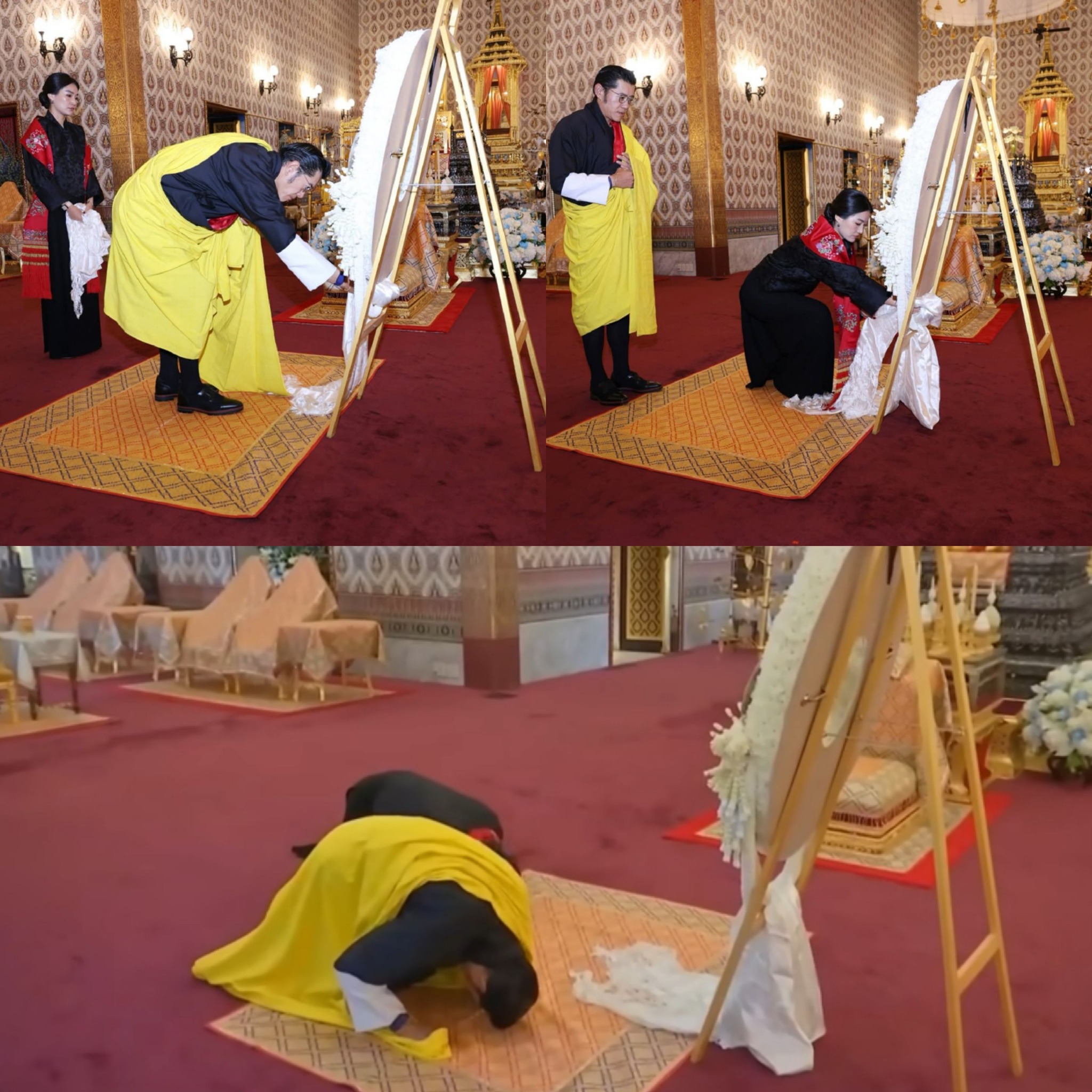 🖤🙏 กษัตริย์จิกมี-พระราชินีเจตซุน แห่งภูฏาน เสด็จฯ มาทรงวางพวงมาลาถวายราชสักการะพระบรมศพ “สมเด็จพระพันปีหลวง”